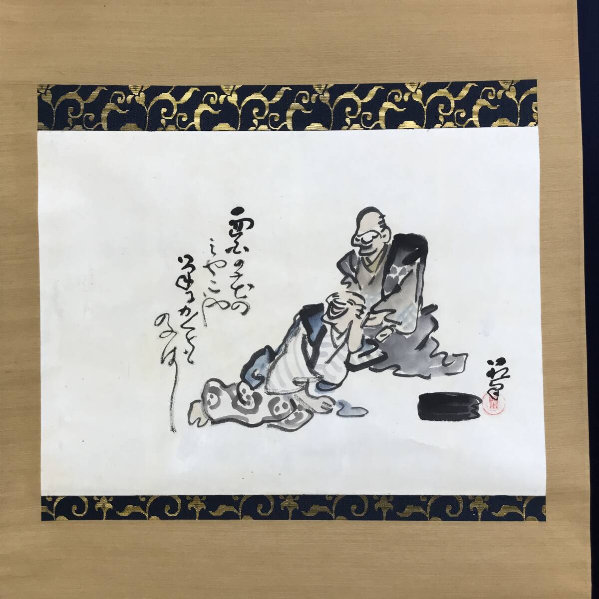 【作品状態】 本紙は紙本肉筆です。本紙は薄汚れ、汚れシミあります。表装は良好です。