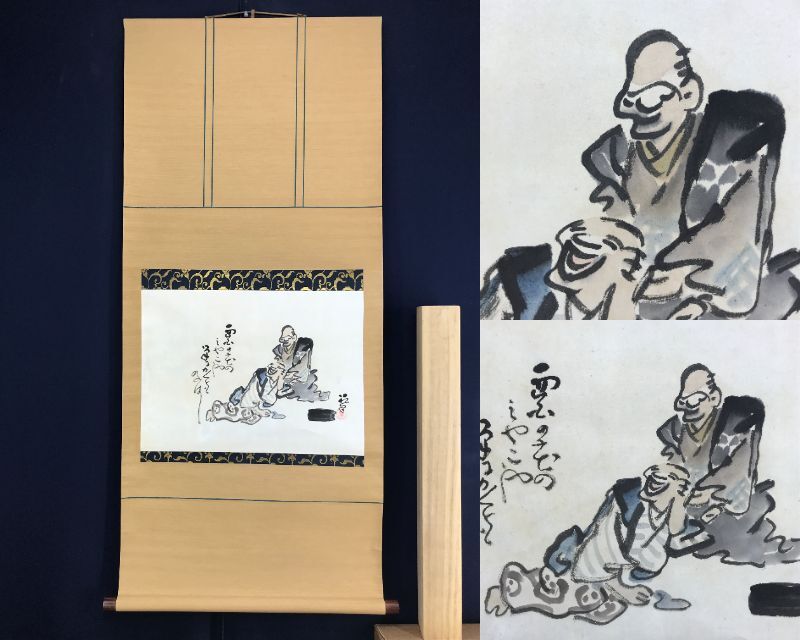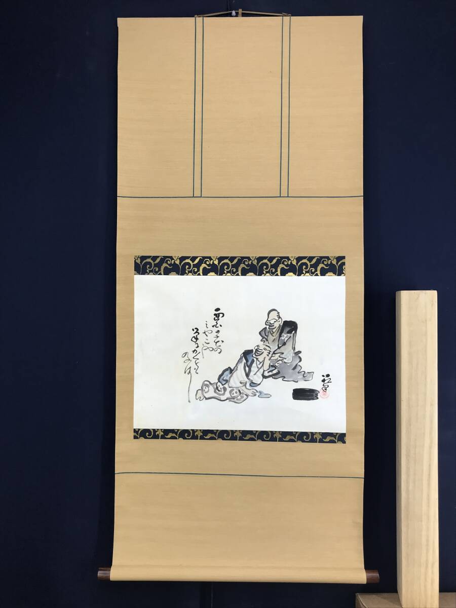真作/伊勢門水/人物画賛/横物/人物図/掛軸☆宝船☆AF-563