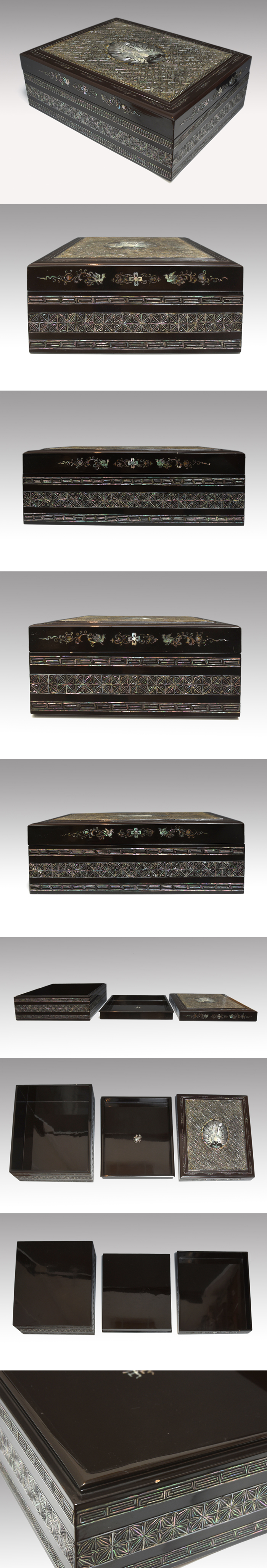 | 韓国 朝鮮工芸 青貝 孔雀文 螺鈿細工 文箱 料紙箱 硯箱 漆芸 漆工芸 |