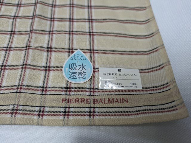 ■未使用 ピエールバルマン ハンカチ ベージュ チェック PIERRE BALMAIN■