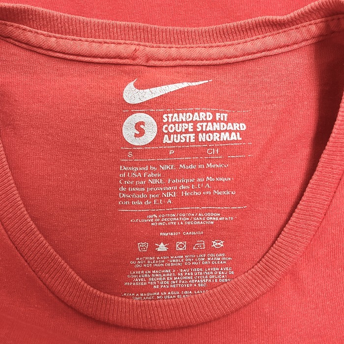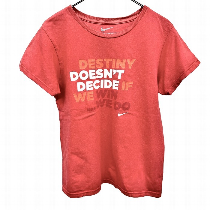 商品タイトル | ナイキ NIKE Tシャツ 輸入古着 英字 文字 スウォッシュ プリント 半袖 ショートスリーブ クルーネック 丸首 綿100% S オレンジ レディース |