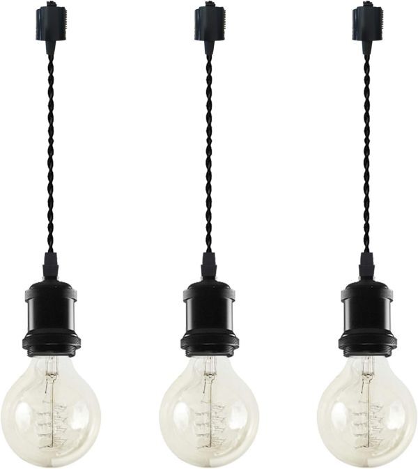 ケビン 3個パック ペンダントライト ダクトレールライト E26 古アンティーク紐 真鍮 電球ソケット LED対応 電球別売り 【コード長さ60cm】