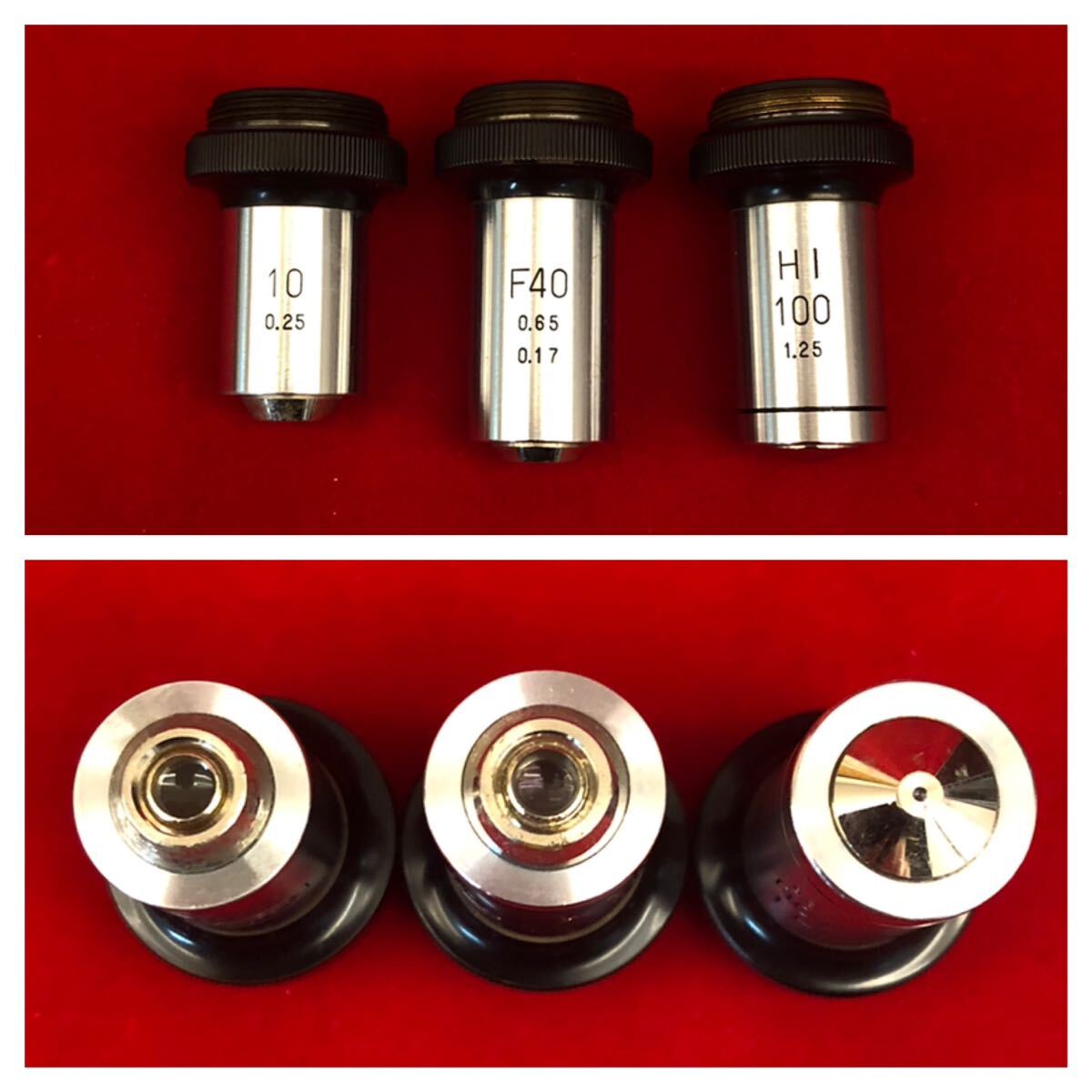| ★OLYMPUS OIC★顕微鏡★木箱付き★GK★接眼レンズ 5X/P10X/P15X★対物レンズ10 0.25/F40 0.65 0.17/HI 100 1.25★オリンパス★(P662) | ||