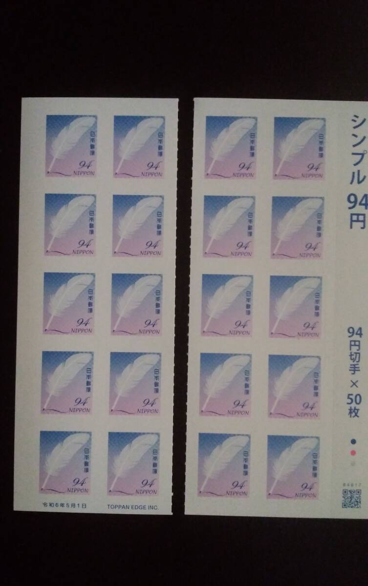 シンプルグリーティング切手令和6年(2024年) 94円切手20枚シール式コレクターズカットになります。