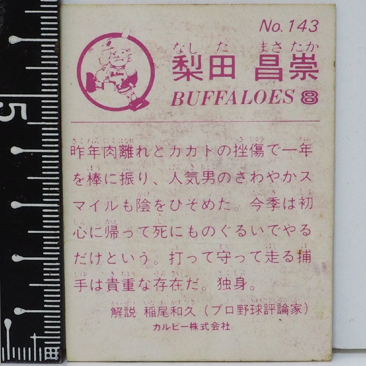 83年 カルビー プロ野球カード No.143【梨田 昌崇 近鉄バファローズ】昭和58年 1983年 当時物 Calbee おまけ 食玩 BASEBALL【中古】送料込