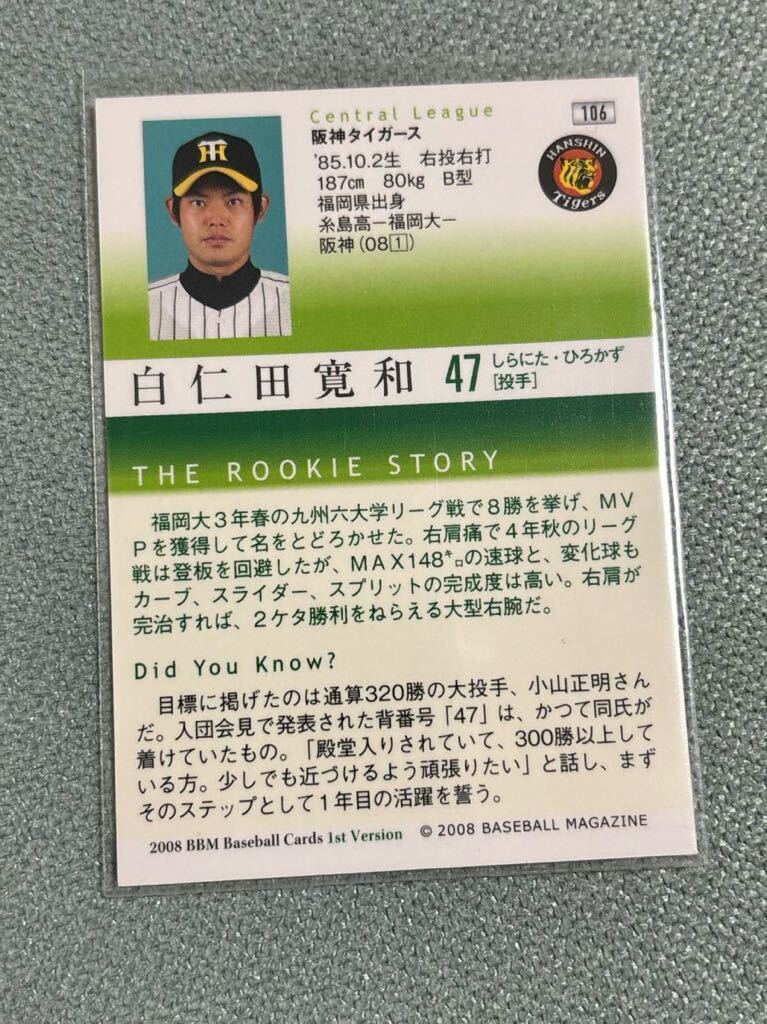 2008BBMベースボールカード1st 106 白仁田寛和 阪神タイガース レギュラーカード RC ルーキーカード