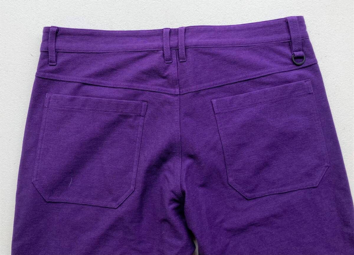 ◎パープル地にサイドのホワイトのロゴプリント、ジーンズのような5ポケットのデザイン