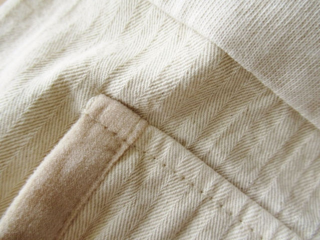 ピグメント染め(顔料染め)で同色ながら異素材の切替と2つのフラップポケットが印象的!