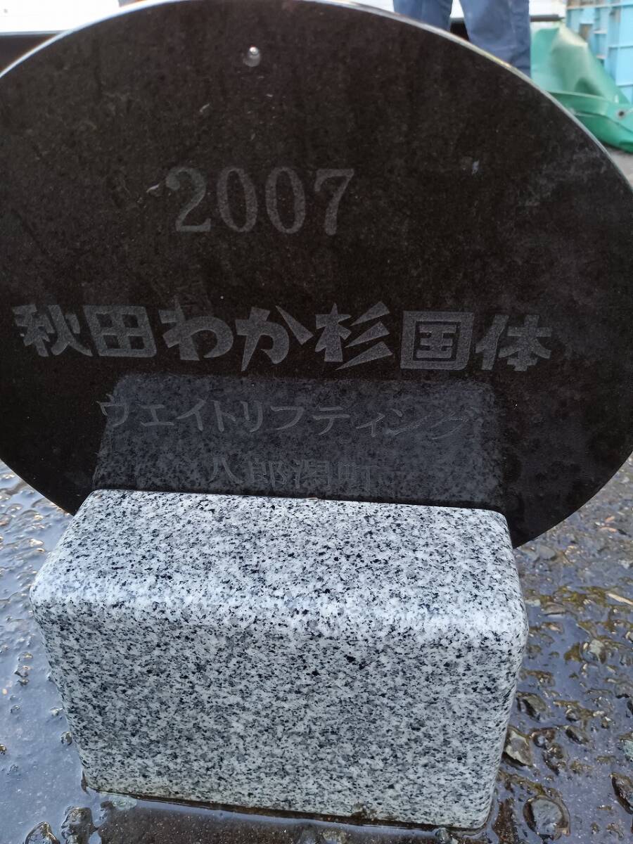 【超貴重!】スギッチ 秋田わか杉国体 ゆるキャラ スギッチのウエイトリフティング部門 石製トロフィー 高さ約33cm *0524