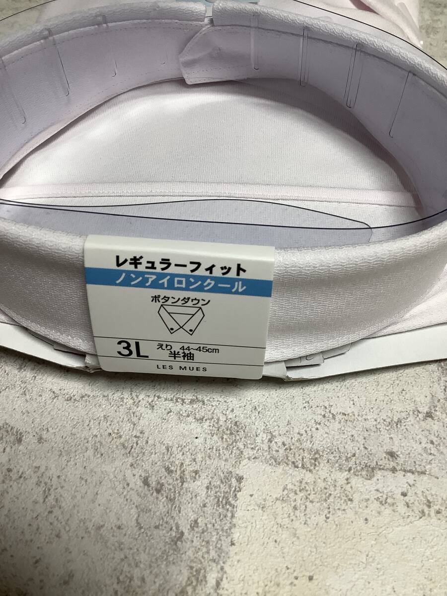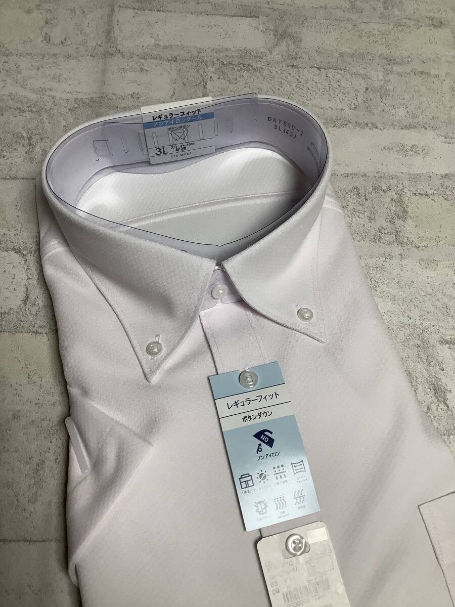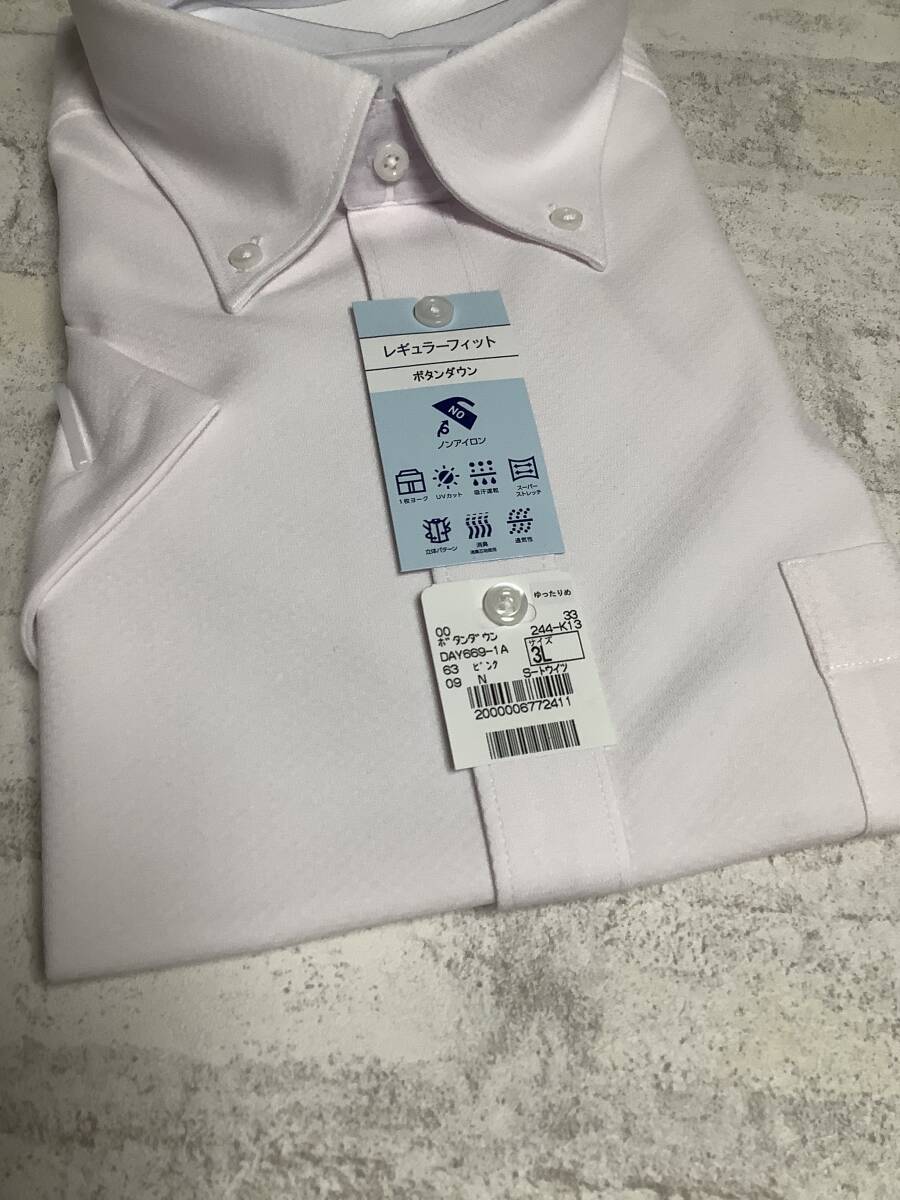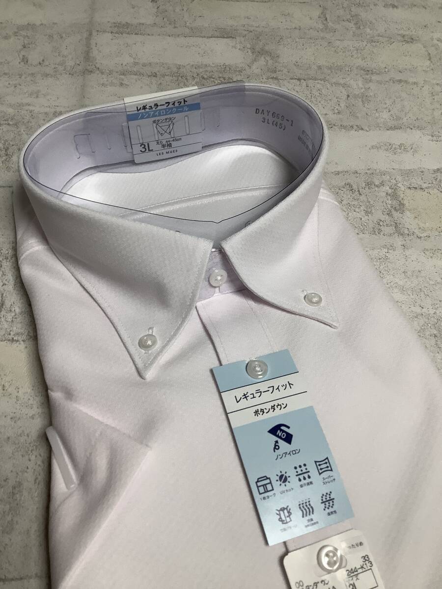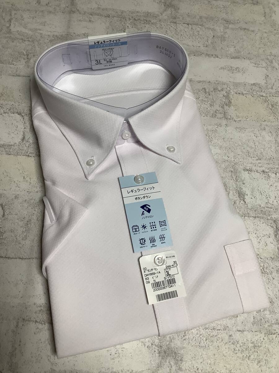 新品未使用 3Lサイズ 45cm 半袖シャツ ピンク クールビズ対応 ボタンダウンカッターシャツ