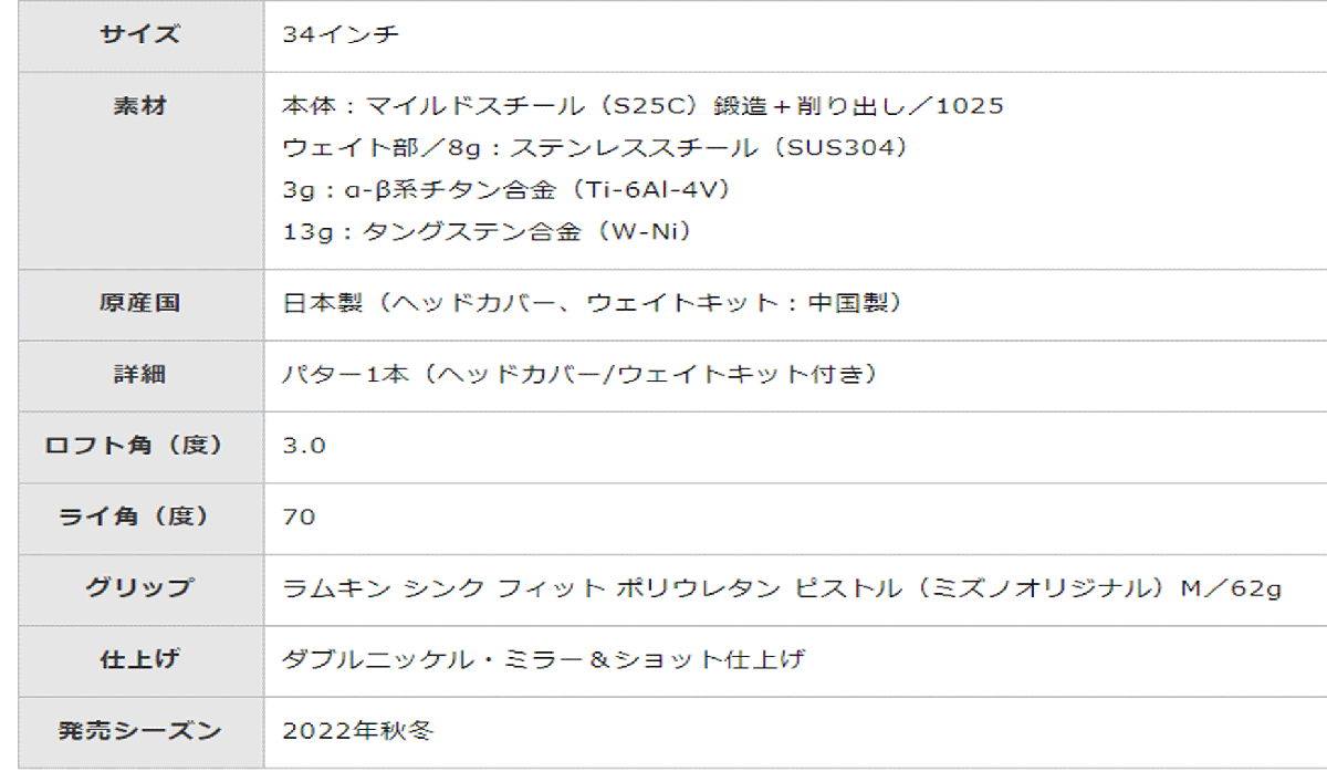 新品■ミズノ■2022.10■M.CRAFT OMOI NO.03■ダブルニッケル■34.0■重めのヘッドウェイト設計で安定性と打感が向上した軟鉄鍛造削り出し
