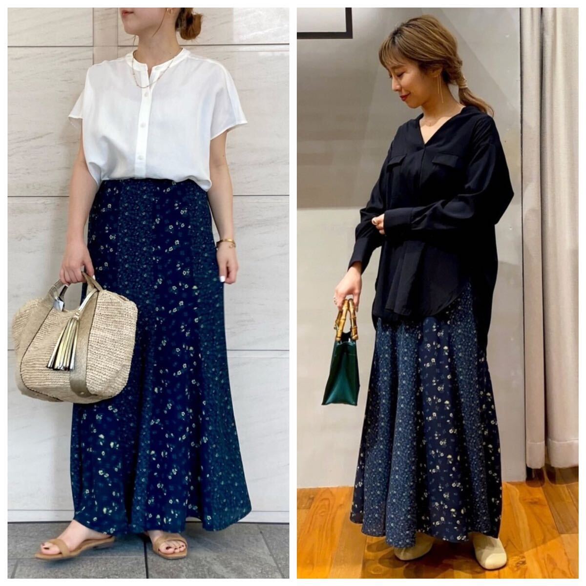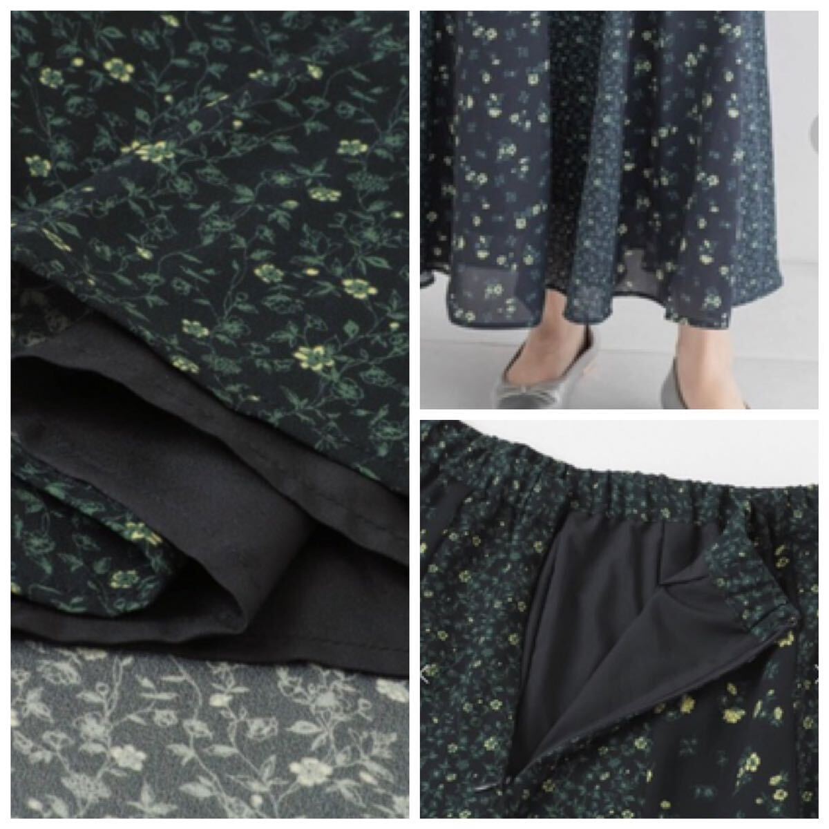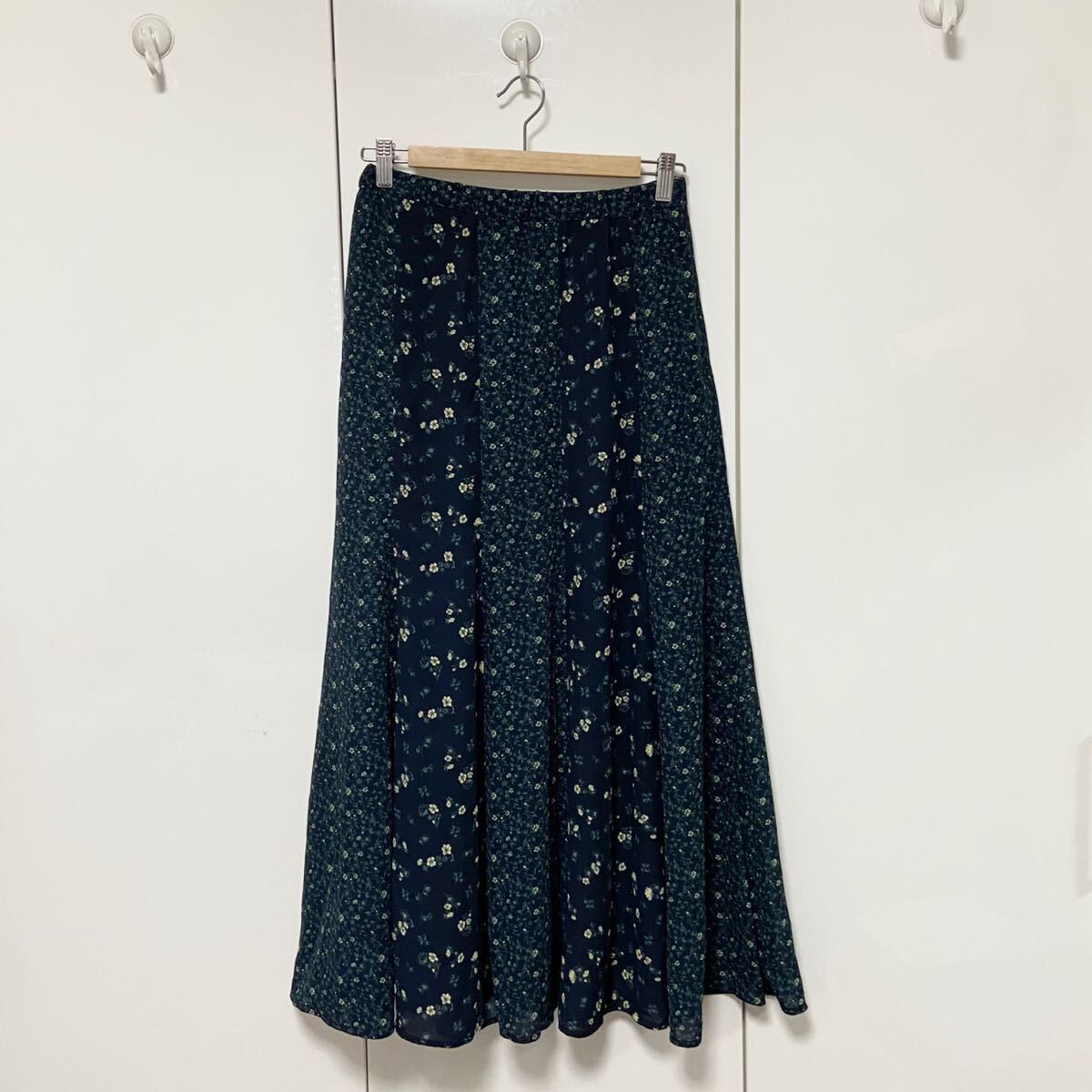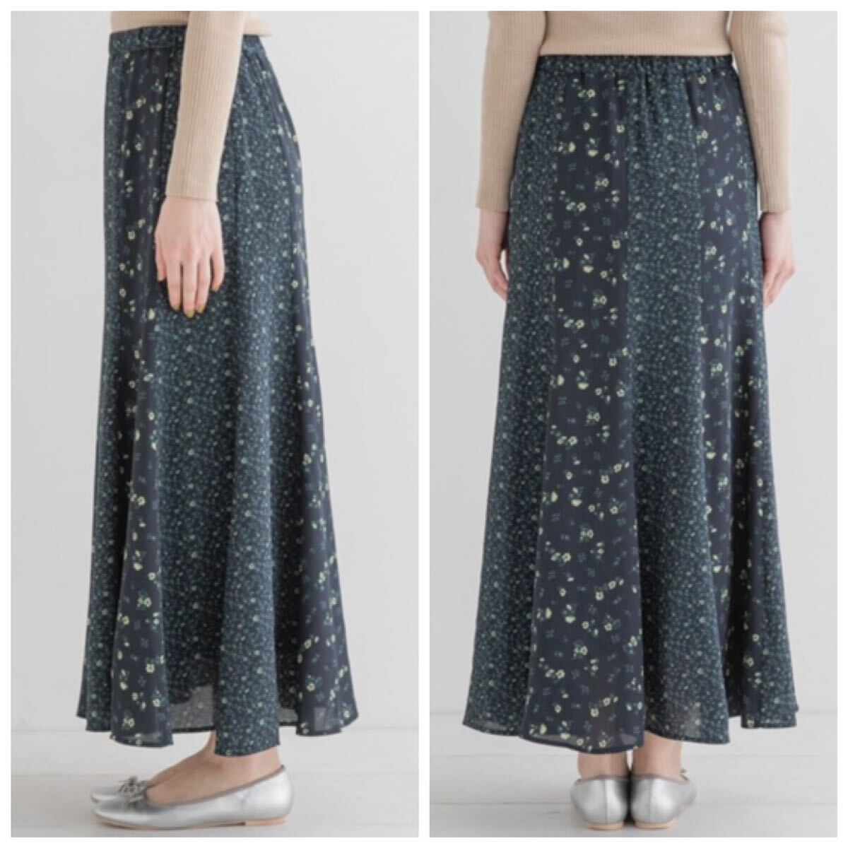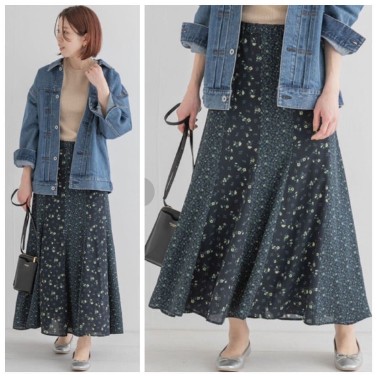 フラワーモチーフのパッチワークが目を惹く主役級のスカート。