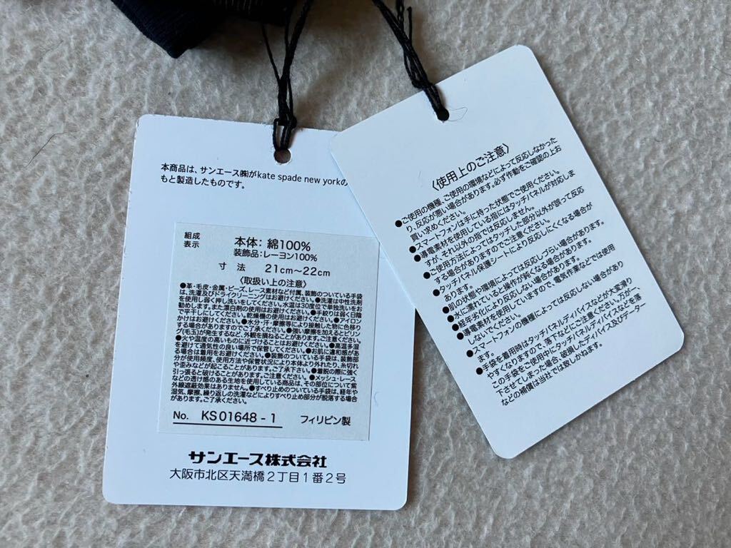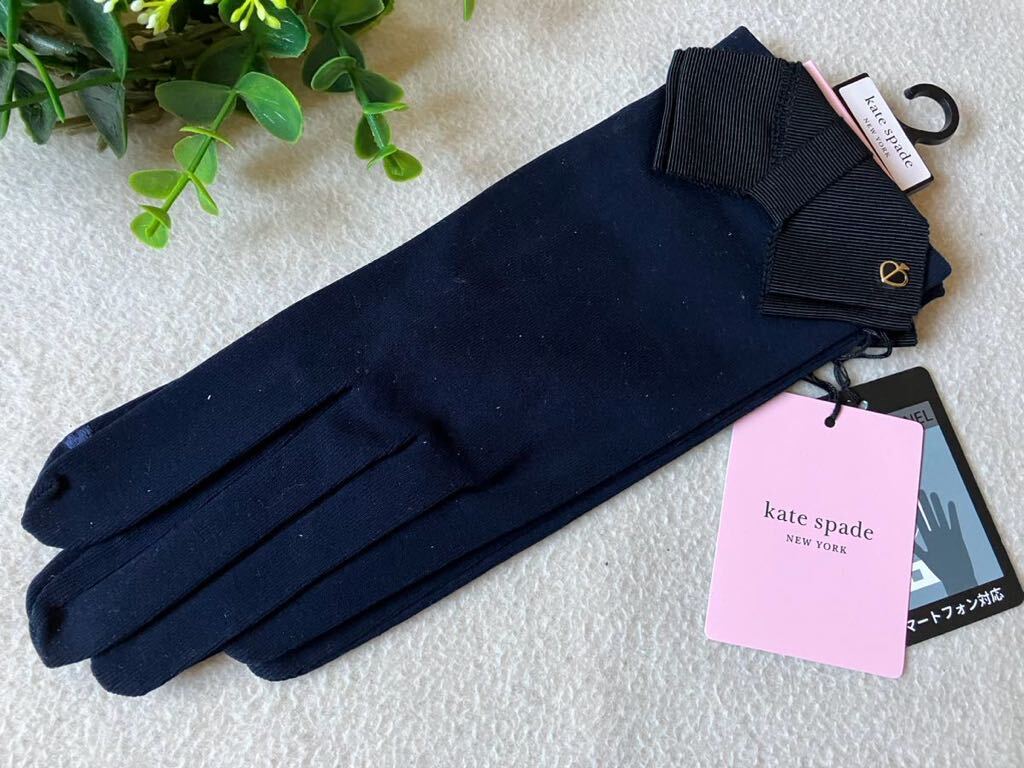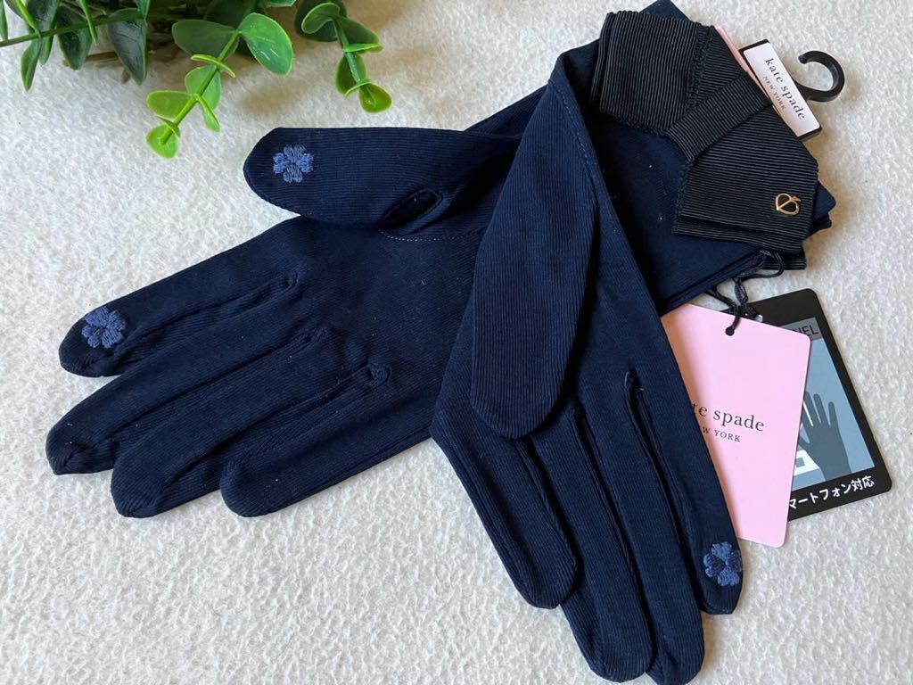 ★新品★ kate spade ケイトスペード 日焼け防止 手袋 五本指 レディース スマホ対応 ネイビー系