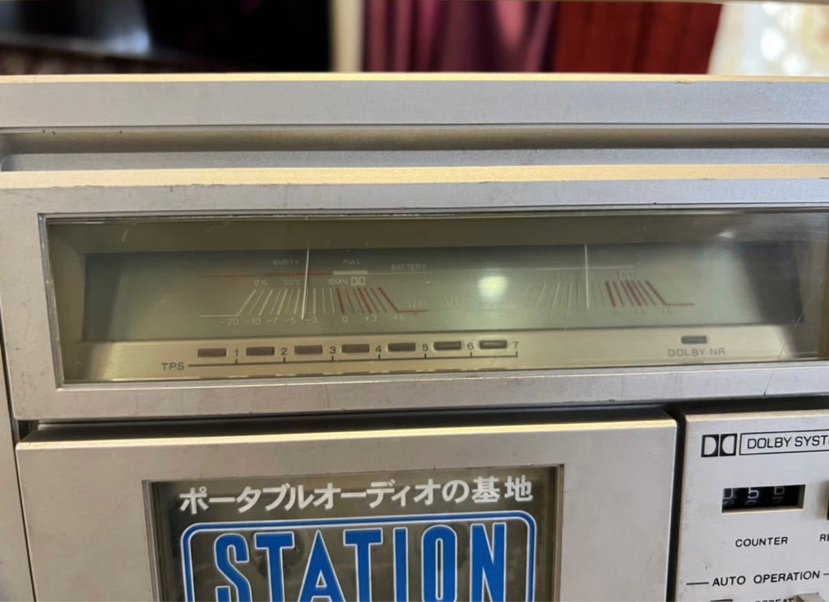 カセットテープおよびラジオ 動作確認済・VUメーター、ラジオ周波数部ライト点灯・アンテナ欠損なし・