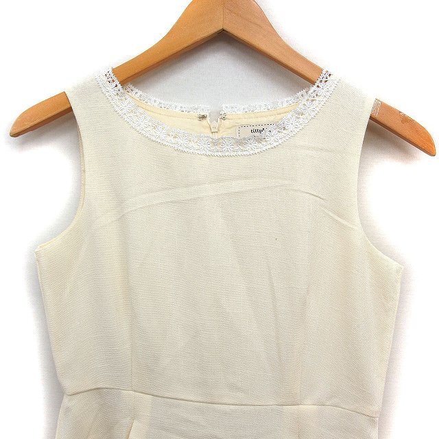 ティティー&コー TITTY&CO タック フレア ワンピース ノースリーブ ミニ丈 レース 無地 S クリーム /FT12 レディース