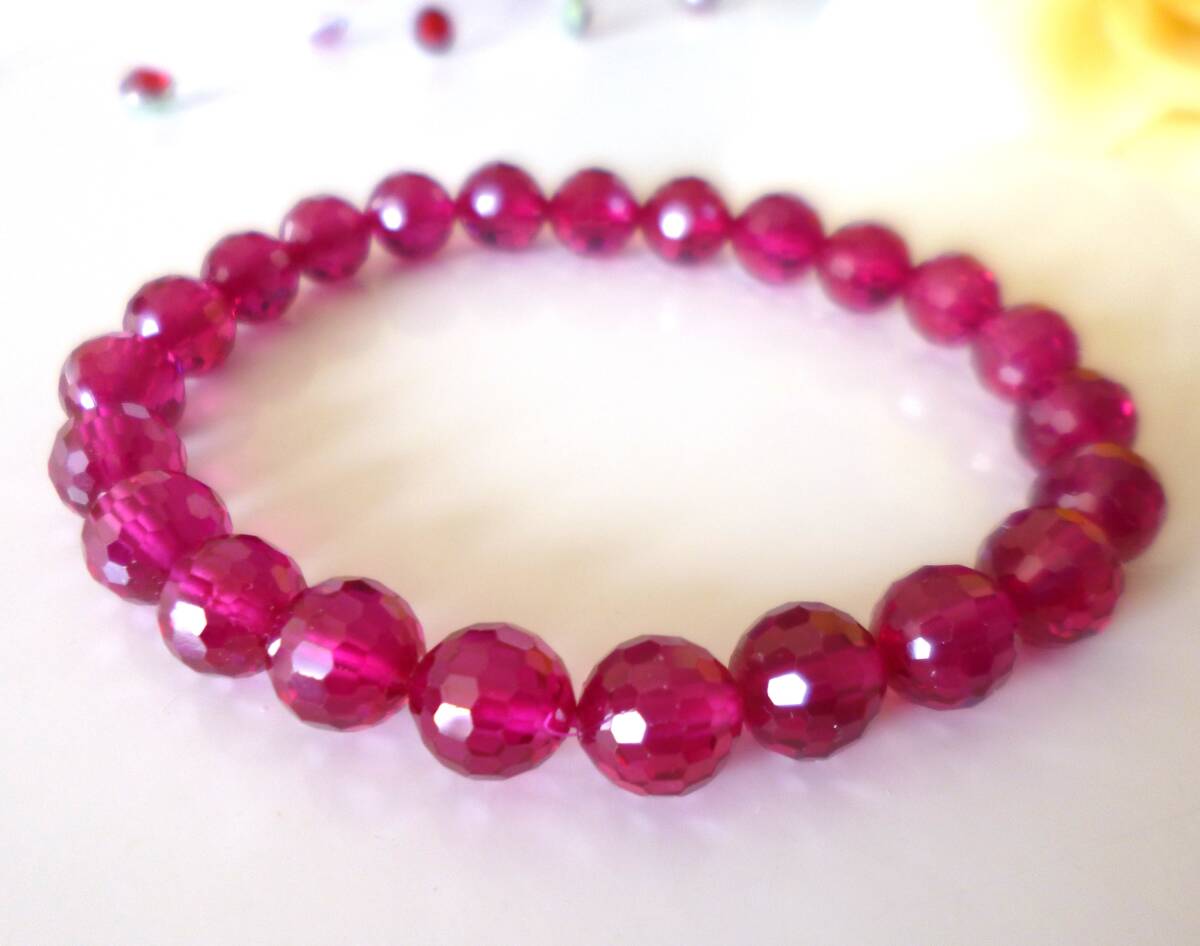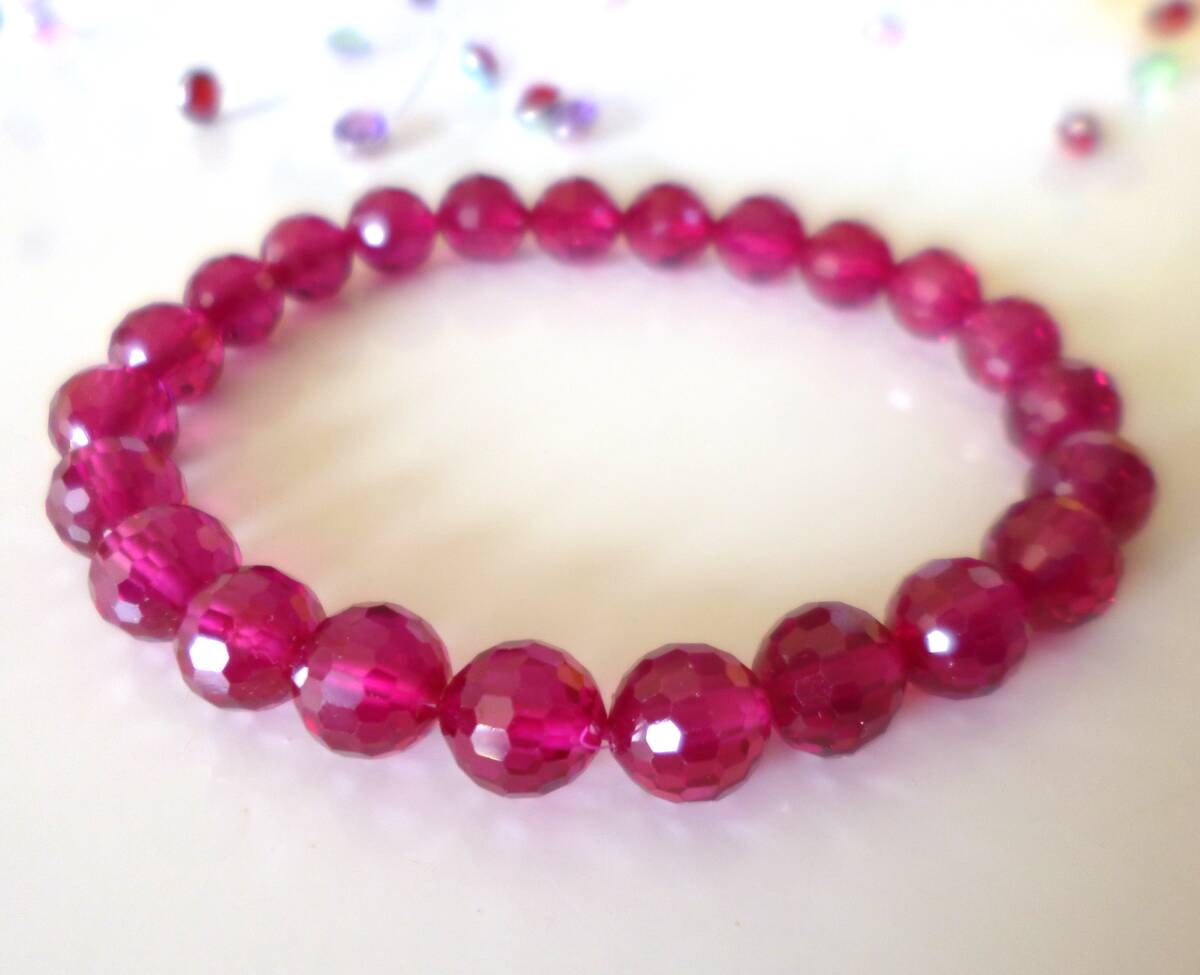 宝石女王   情熱   純愛☆  勝利  ☆カリスマ性☆   エネルギー活性☆  ☆生命力   合成ルビー☆  ☆128面ミラーカット☆  8mm☆  16cm☆  7月の誕生石