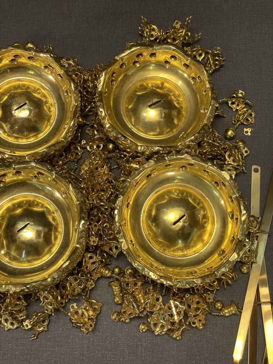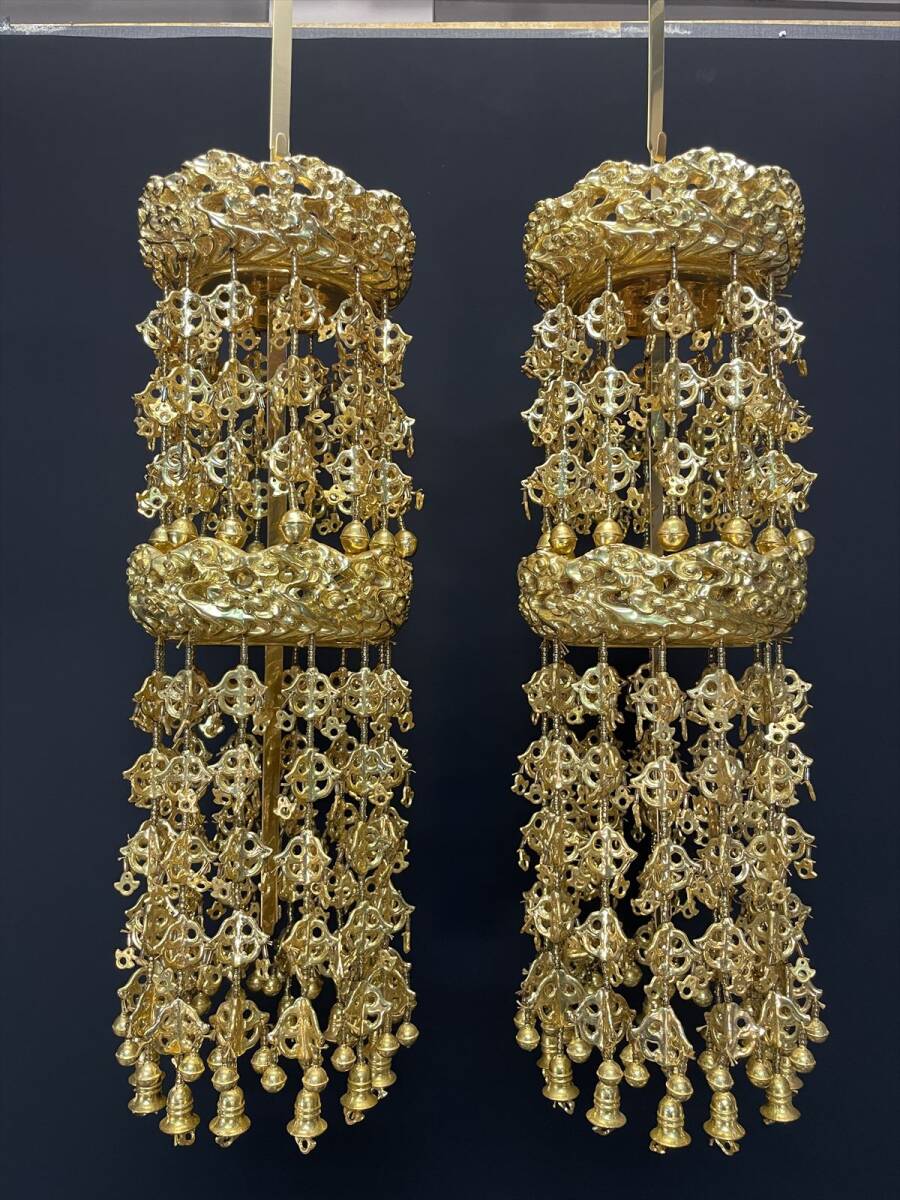 まごころ堂 送料無料 本金箔瓔珞 大きな仏壇用 二重八段12下り 高さ42㎝(総70㎝)幅14㎝ 開梱時に細かい飾金具が多少取れている可能性があります。多少は許容下さい。 |
