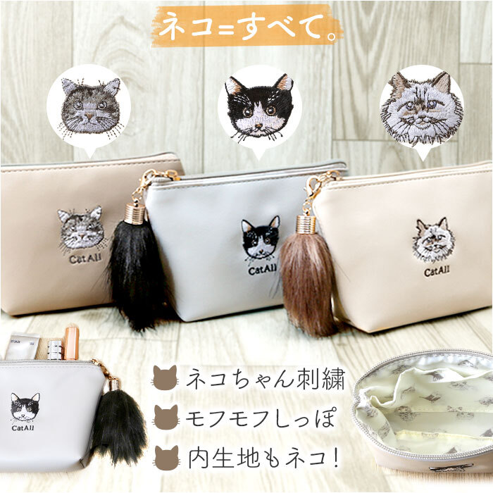 商品説明 | ・・【お出かけのお供にぴったり】 ・可愛らしいネコちゃんの刺繍入り♪小物がまとまる「CA 船形フェイス刺繍ポーチ」が新登場。 ・【スタイリッシュなネコモチーフ】 ・ネコのお顔刺繍をフロントに配置。大人も持ちやすい、落ち着きのある仕上がり。 ・【アクセントになるモフモフなしっぽ】 ・カニカンで取り外しできるしっぽ付き♪思わず触れたくなる、柔らかな毛並みがポイント。 ・【ガバっと開くファスナー開口】 ・開閉がスムーズなファスナー式。中身を確認しやすく、ファスナーを閉じれば飛び出しもガード。 ・【細かいアイテムをひとまとめ】 ・コスメやハンドクリーム、ガジェット類など☆バッグの中でも迷子知らず。 ・【便利な内ポケット付き】 ・細々した物を仕切れるポケットを1つ装備。 ・【開けた時も可愛さ満点】 ・内生地にネコのフェイス柄をプリント。細かい部分にも可愛いこだわりを。 ・【自分用にもギフトにも最適】 ・ネコ好き必見!いつも一緒に楽しくお出かけ♪自分用にはもちろん、大切な方への贈り物にも。 ・【ネコ雑貨を展開するCat All】 ・”ネコはすべてであり、すべてはネコである”がモットー。 ・【カワムラオリエさんとのコラボ】 ・ネコを愛するイラストレーター。アート活動やお菓子のパッケージなどで人気♪ ・【ポケット仕様】 ・内側:オープンポケット×1 |