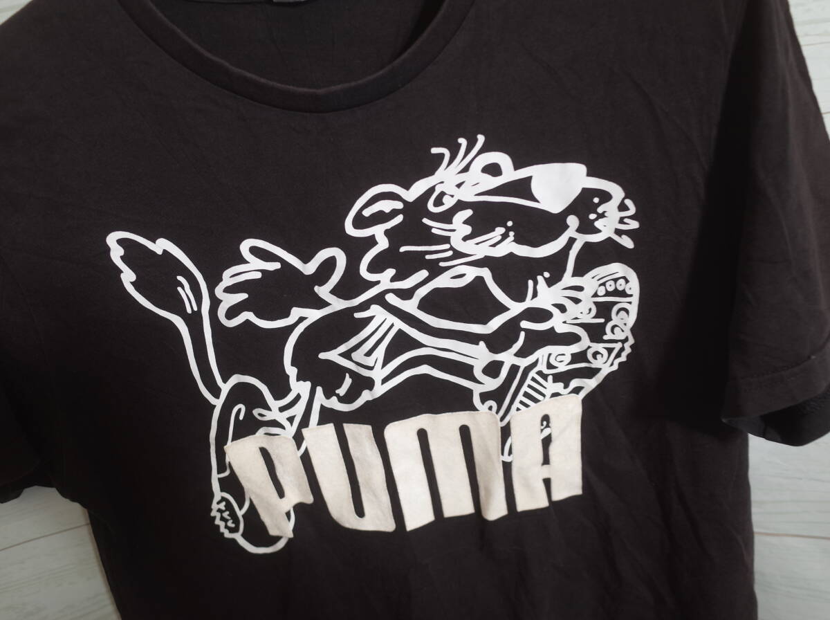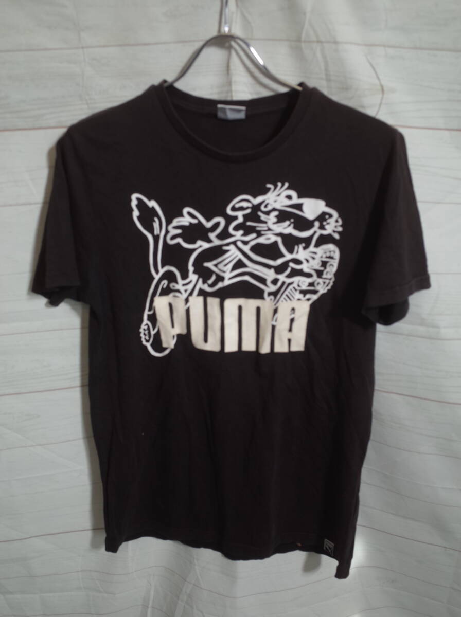 メンズ pk134 PUMA プーマ フロッキー ロゴ プリント 半袖Tシャツ S ブラック 黒