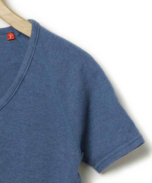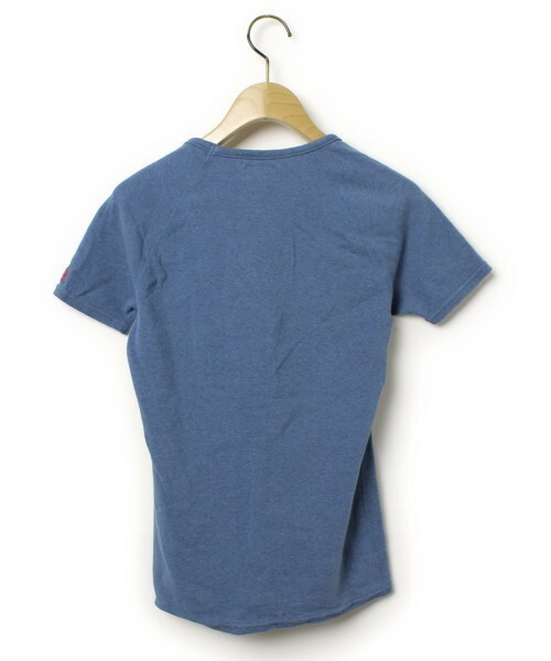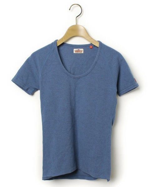 #古着屋大和 ハリウッドランチマーケット HRM ハリラン レディース ストレッチフライス Uネック 半袖 Tシャツ Hロゴ刺繍 L ライトブルー
