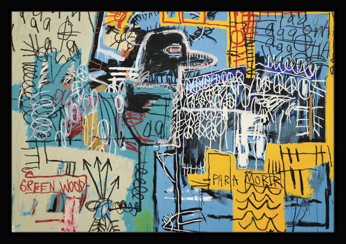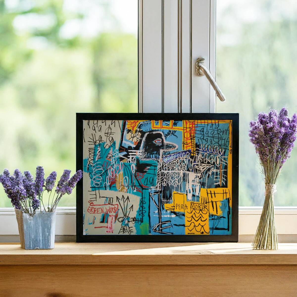 FBQ012-Basquiat フレーム付 A4サイズ マット無 ジャン=ミシェル・バスキア Jean Michel Basquiat グラフィティ・アート frame 枠有 模写