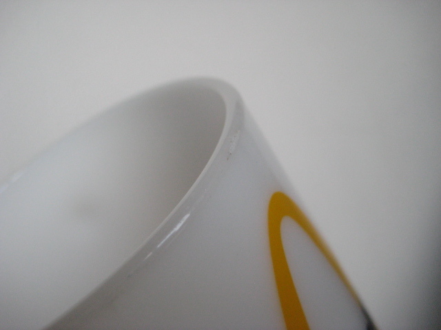 よく見ると、うち外とも所々にスレ、フッテッド部分に練りむらが、微小のペイントロス、リムにザラツキがありますが、ヒビ欠けなく全体的によい状態です。