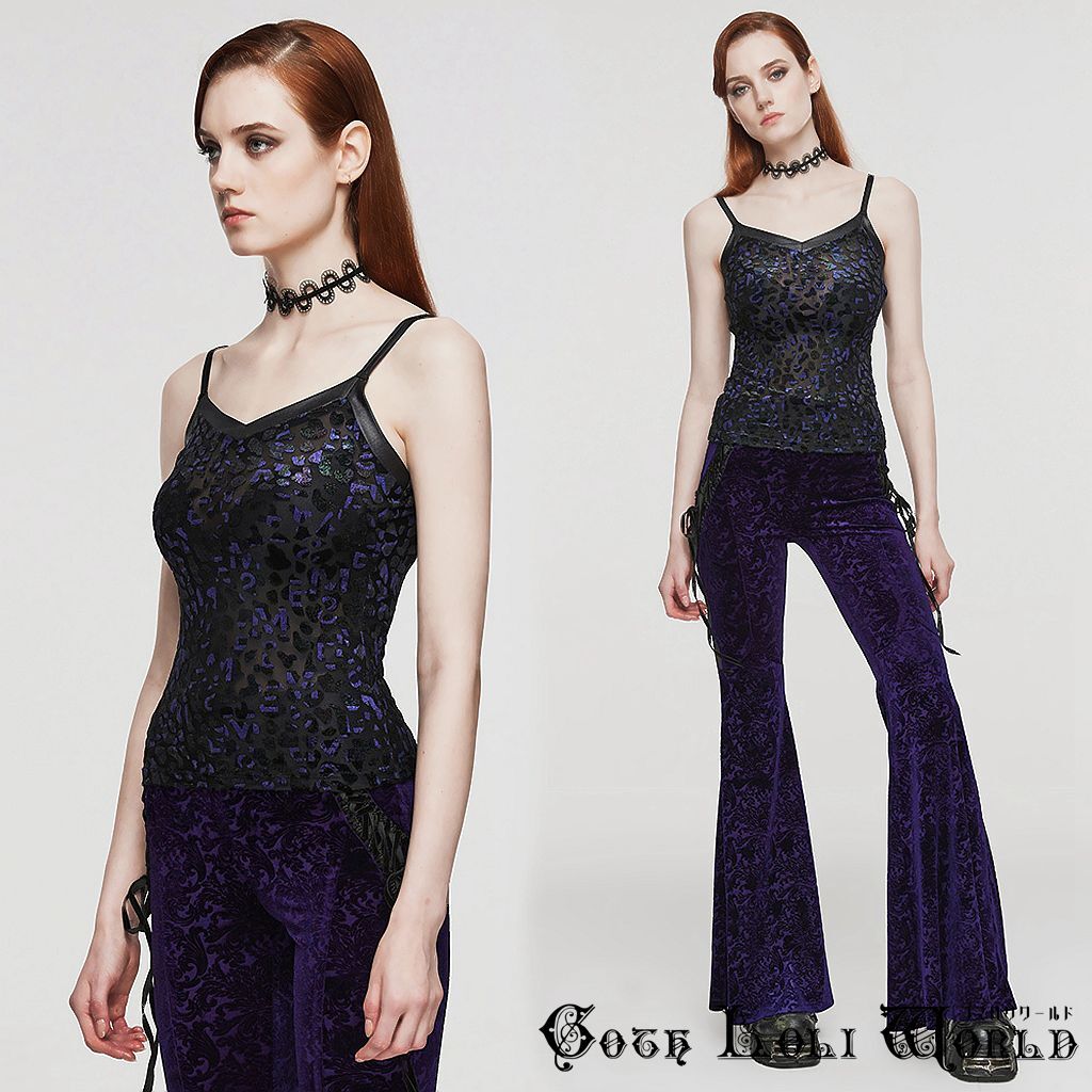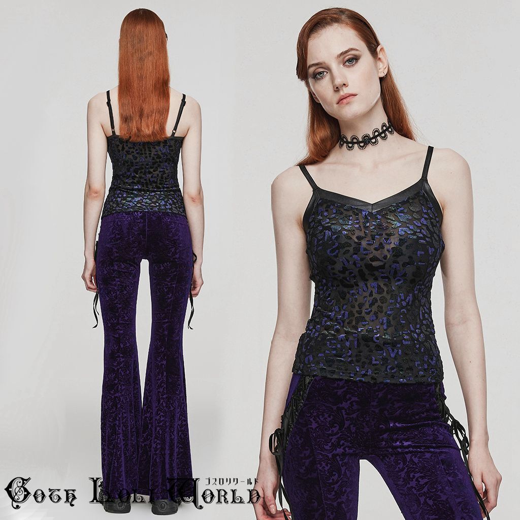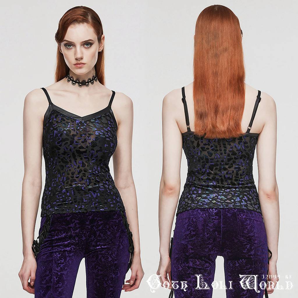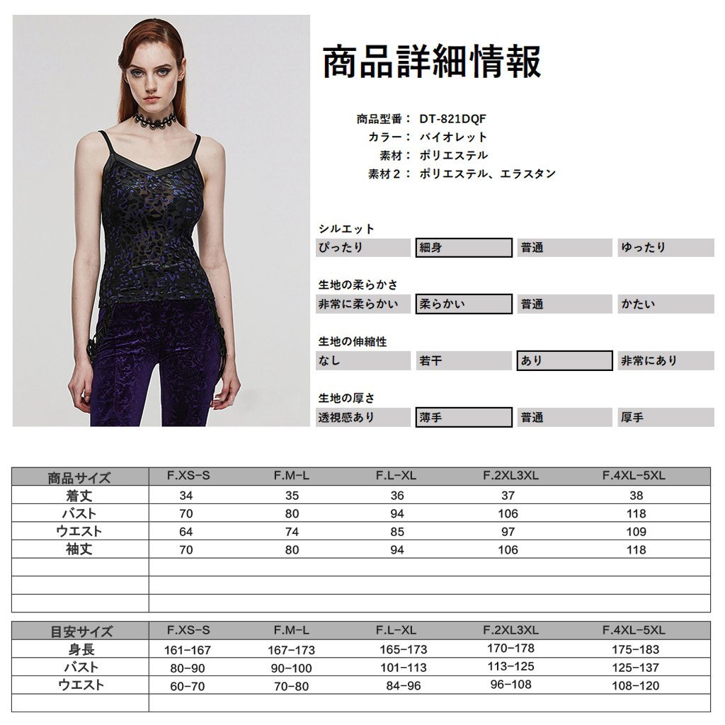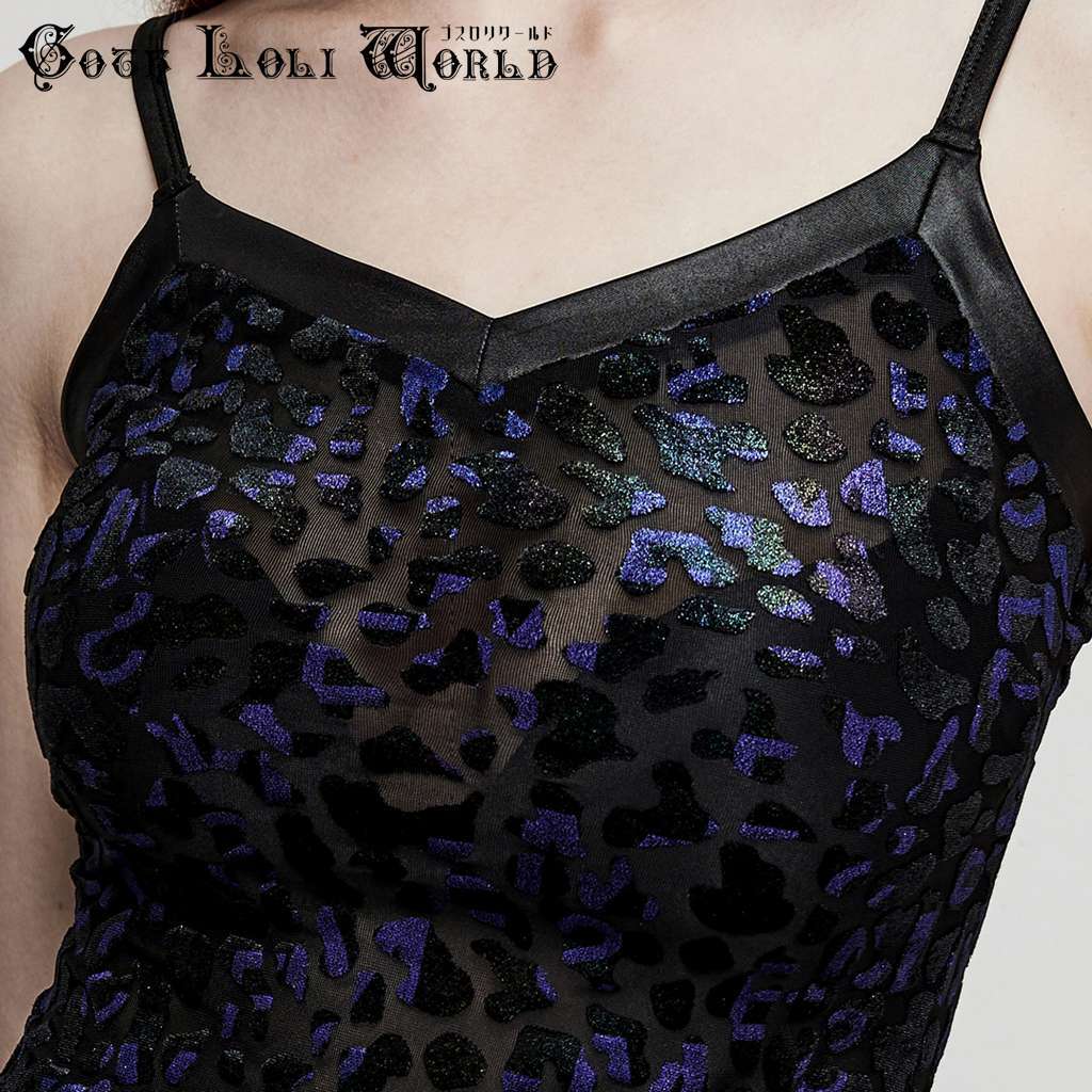 DT-821DQF-BK-VI-XS-S ヒョウ柄シースルースリム キャミソール ヴァイオレット ゴスロリワールド ゴシック パンク ロック ビジュアル系 V系