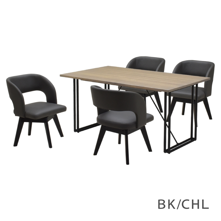 ダイニング5点セット 幅150cm 回転チェア nok150-5-mio341gy-chl ブラック チャコール 4人 鉄脚 ファブリック 30s-6k tw iy