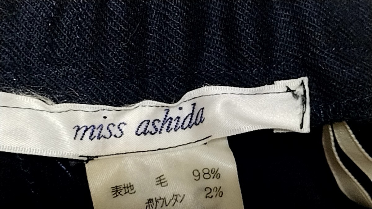 ミスアシダのウール素材ひざ丈タイトスカートになります。シンプルかつ、ベーシックな無地のデザインですがイタリア製の生地を使用。