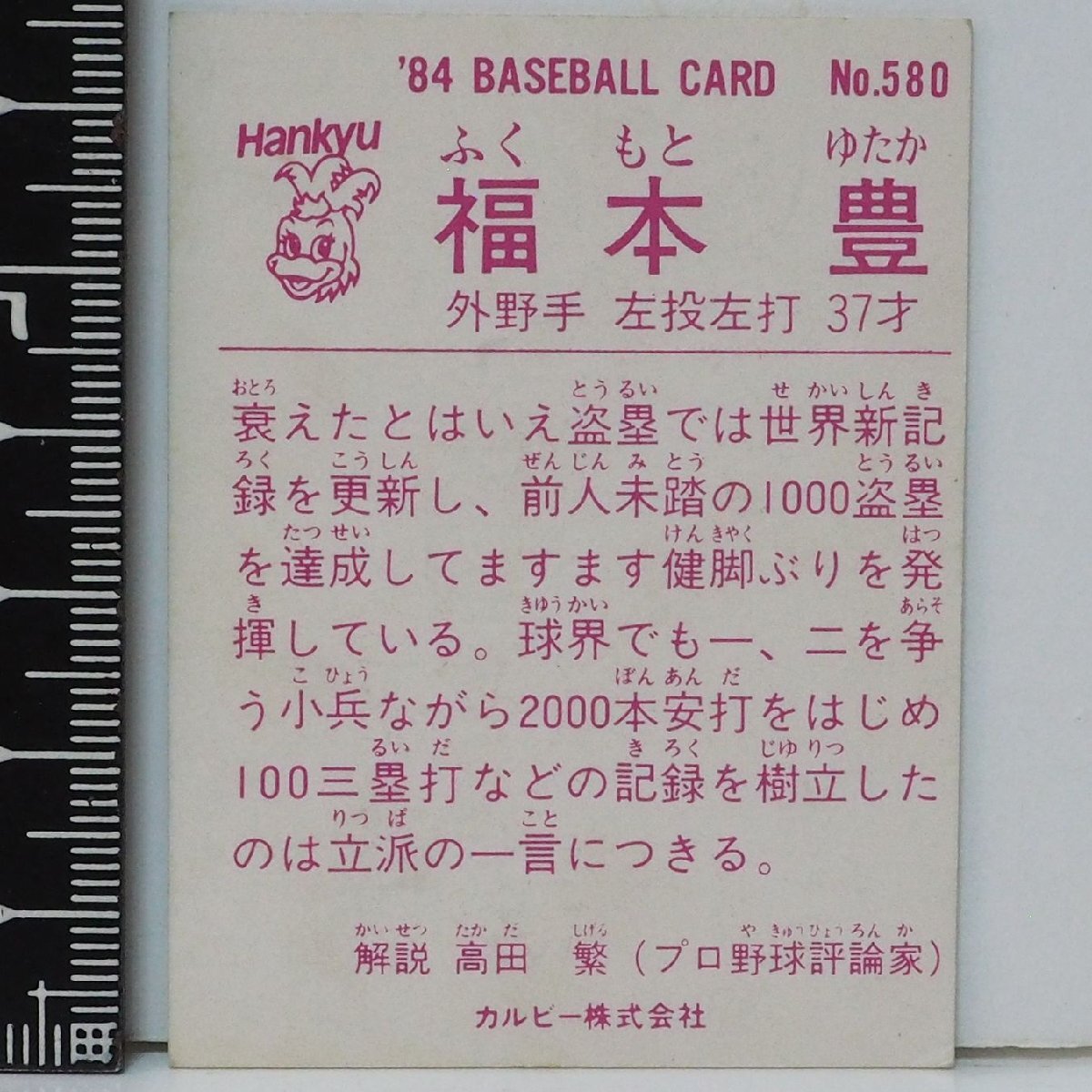 84年 カルビー プロ野球カード No.580【福本 豊 外野手 阪急ブレーブス】昭和59年 1984年 当時物 Calbee おまけ 食玩 BASEBALL【中古】