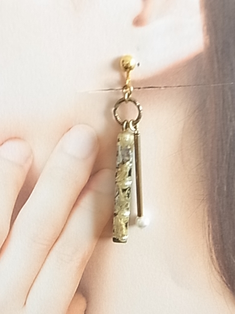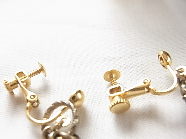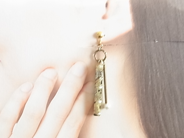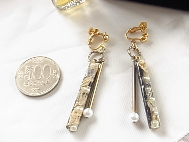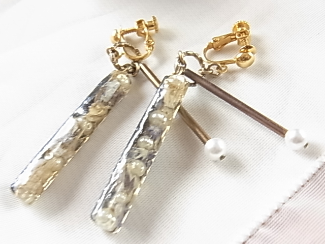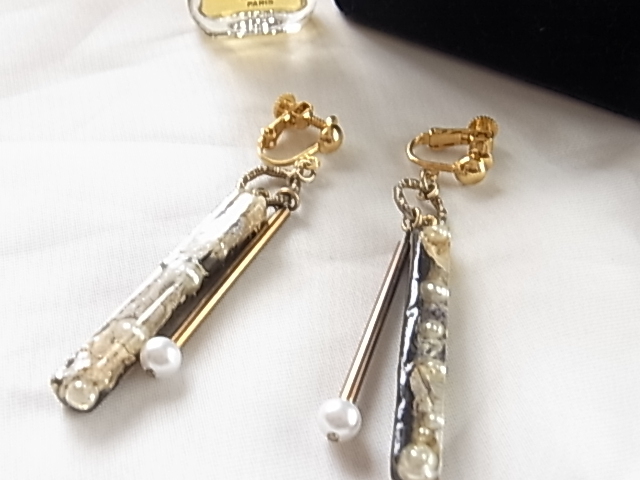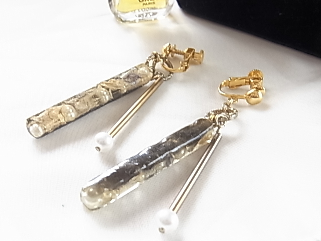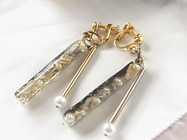 ビンテージ/ヴィンテージ フェイクパール イミテーションパール 樹脂のようなバーにもfake真珠が埋まっている 個性的なイヤリング■