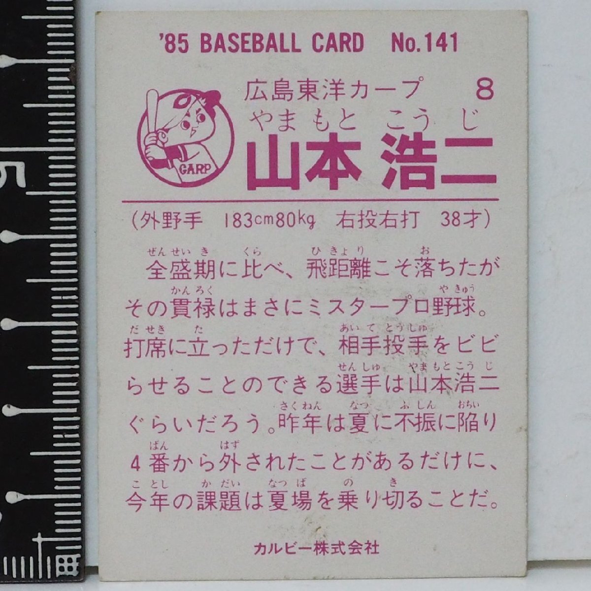 85年 カルビー プロ野球カード No.141【山本 浩二 外野手 広島東洋カープ】昭和60年 1985年 当時物 Calbee おまけ 食玩 BASEBALL【中古】