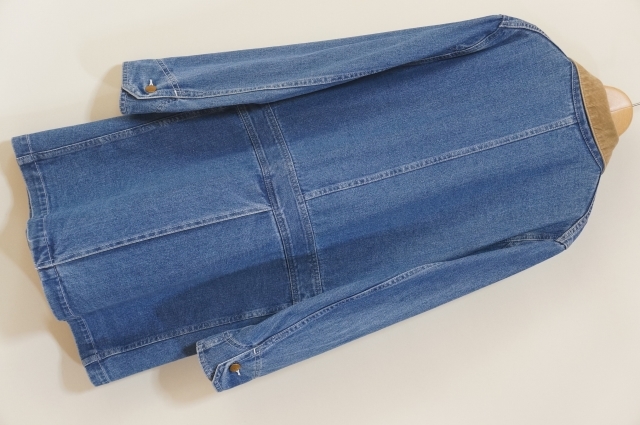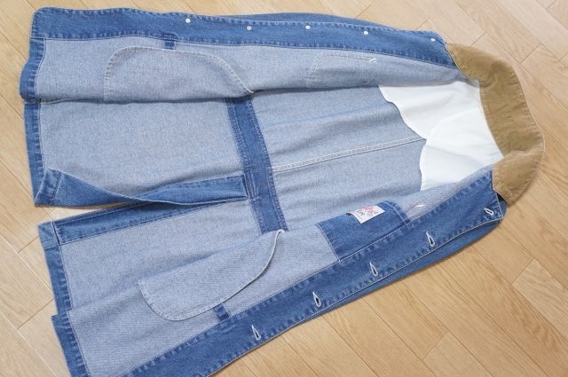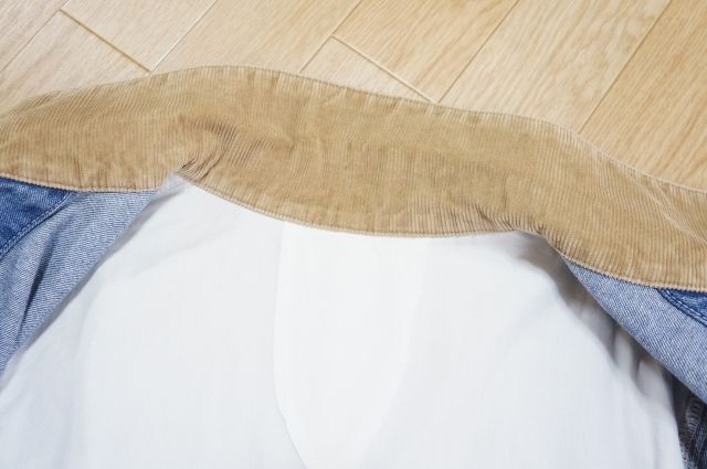 襟コーデュロイデザイン、色々と着こなしを楽しめる、デニムコートアイテムです。