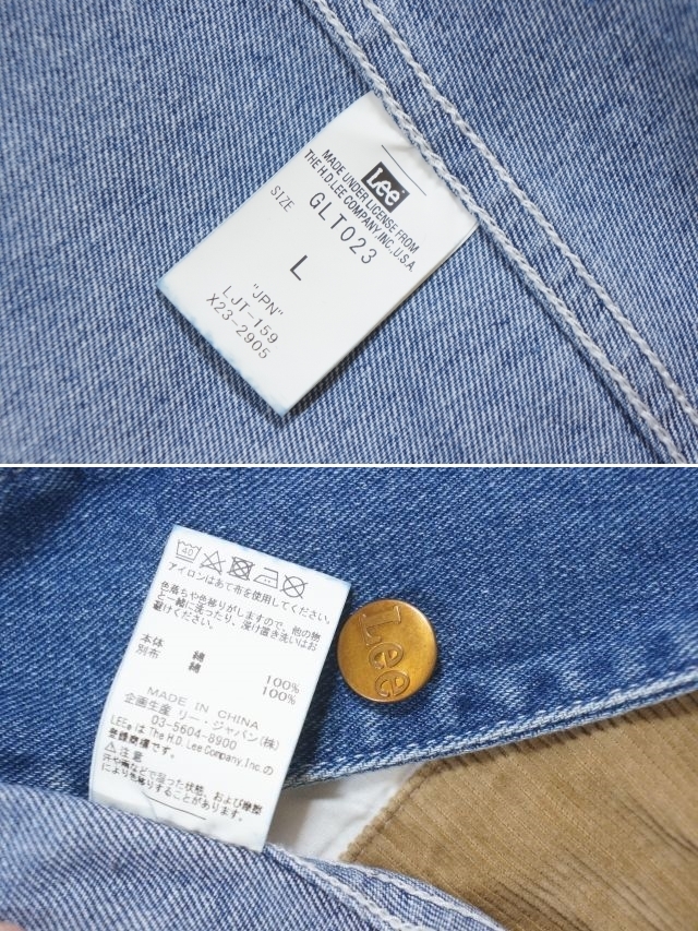 J378 即決 良品 Lee リー 襟コーデュロイ ユーズド加工 デニム ショップコート カバーオール L ロング