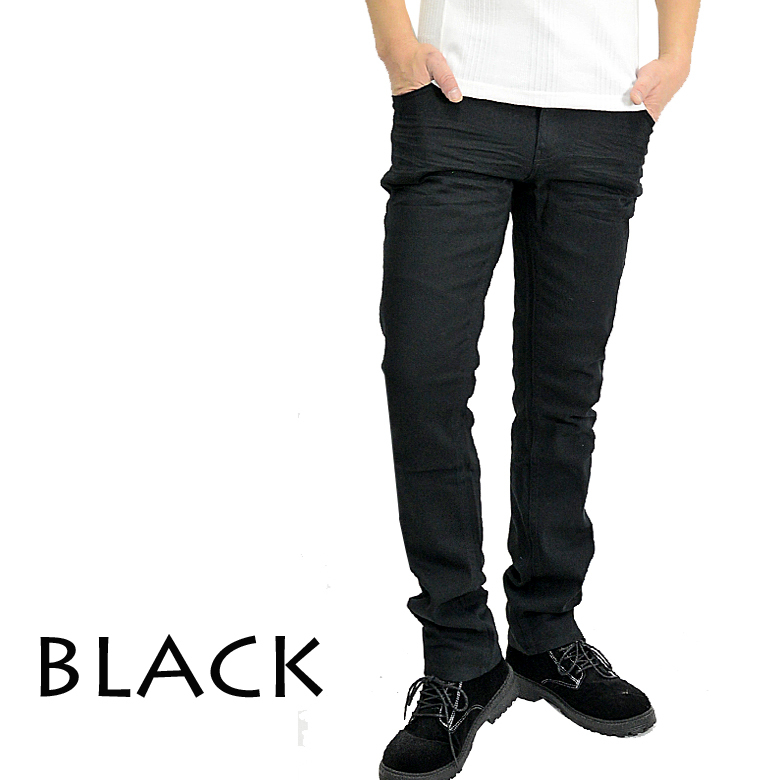 メンズデニム ストレッチデニム 髭加工ジーンズ 33243 スキニーパンツ スリムパンツ 新品ブラック LL