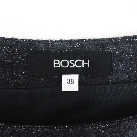 ボッシュ BOSCH ワンピース チュニック 七分袖 ラウンドネック ミニ丈 ラメ ウール混 38 ブラック ※EKM レディース