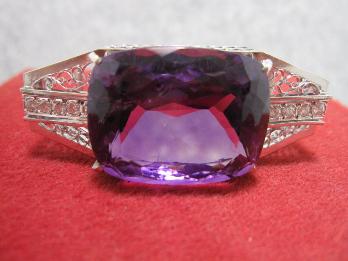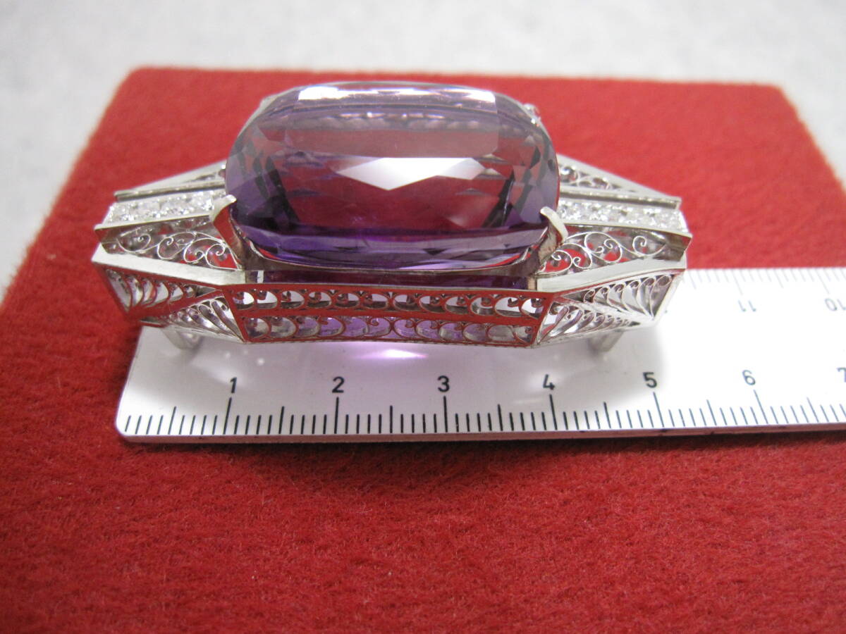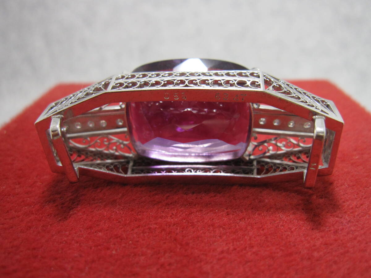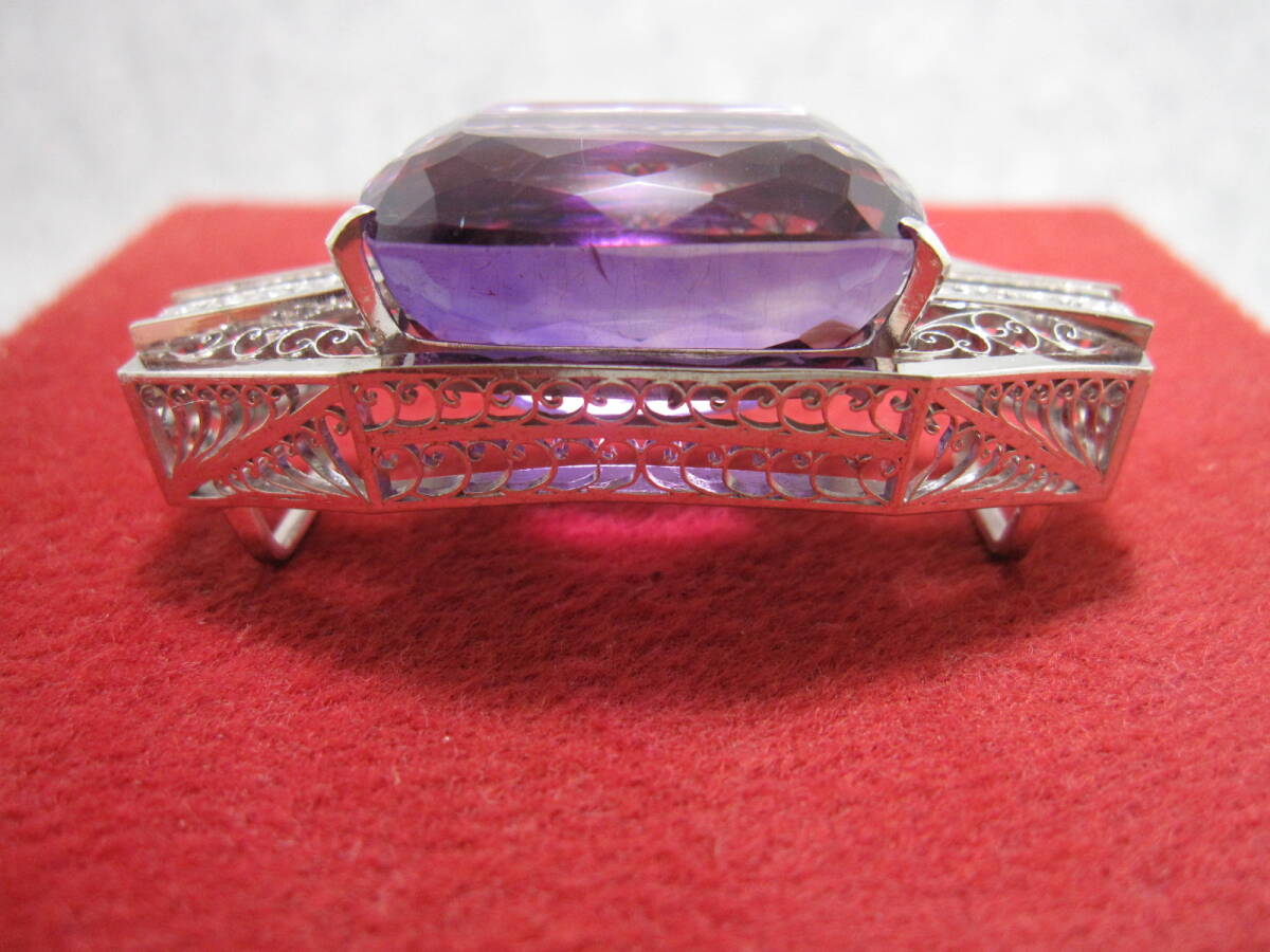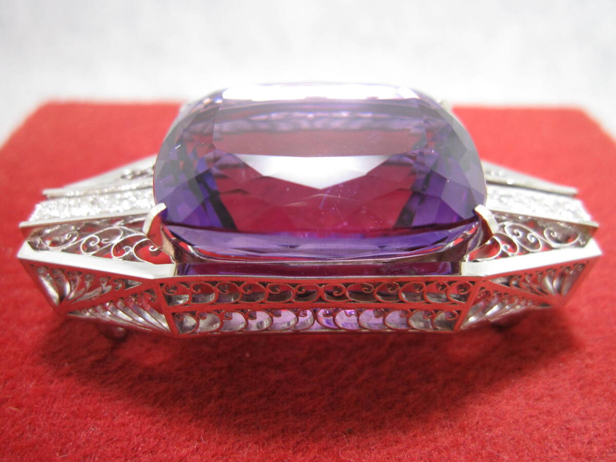 ★Pt プラチナ アメジスト63.47ct ダイヤモンド0.51ct 帯留め 手作り 未使用品