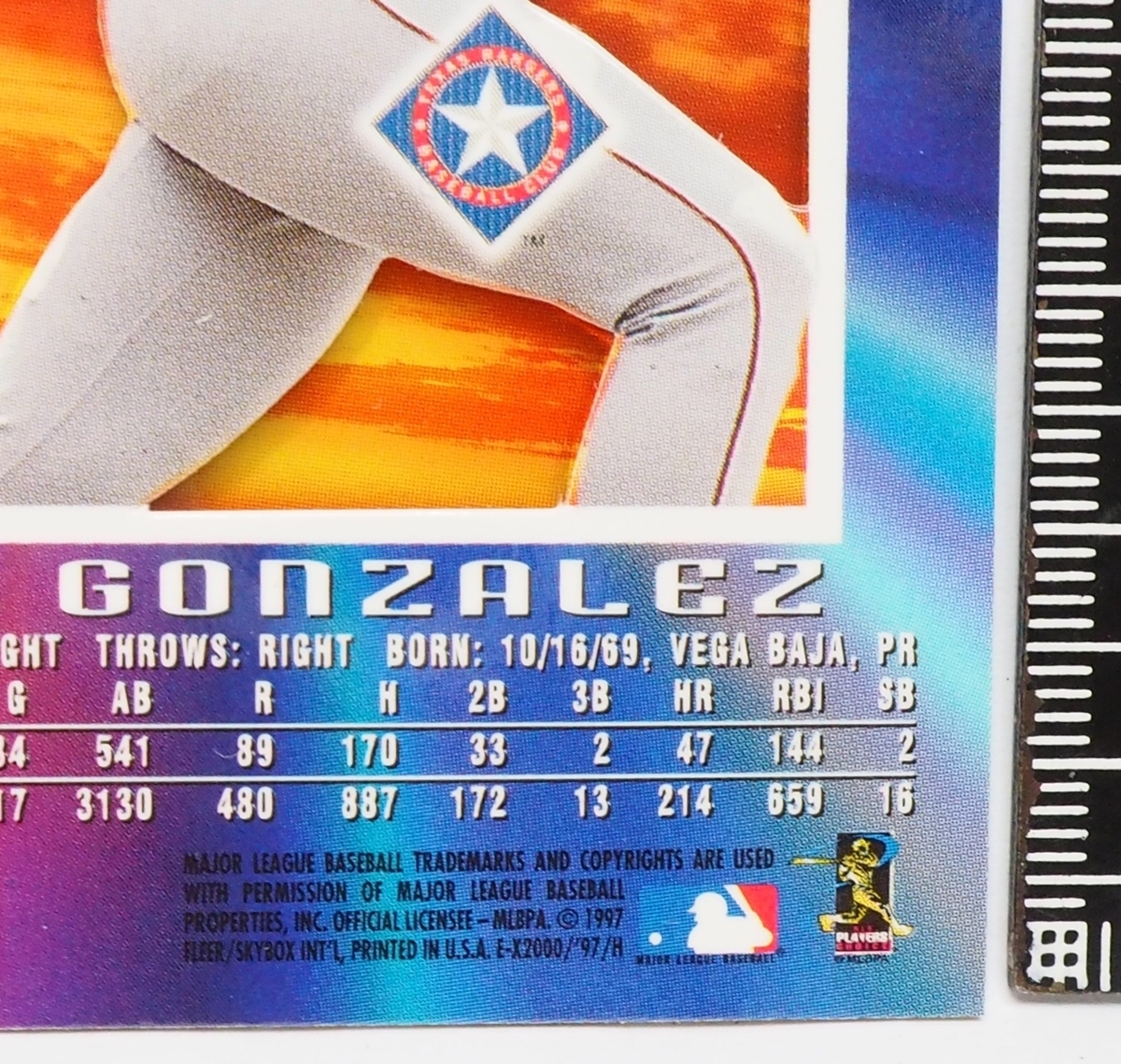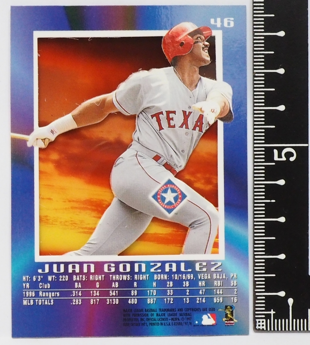 FLEER Skybox EX2000 #46【Juan Gonzalez(TEXAS RANGERS・OF)】1997年MLBメジャーリーグ野球カードBaseball CARDフリーア【送料込】