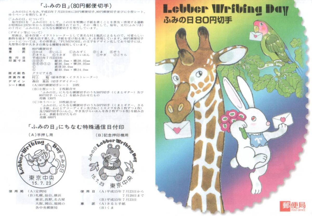 記念切手 ふみの日 2003 Letter Writing Day 村上 勉 リーフレット 解説書 わくわく切手ニュース2003⑩ 冊子付 s★★★☆☆