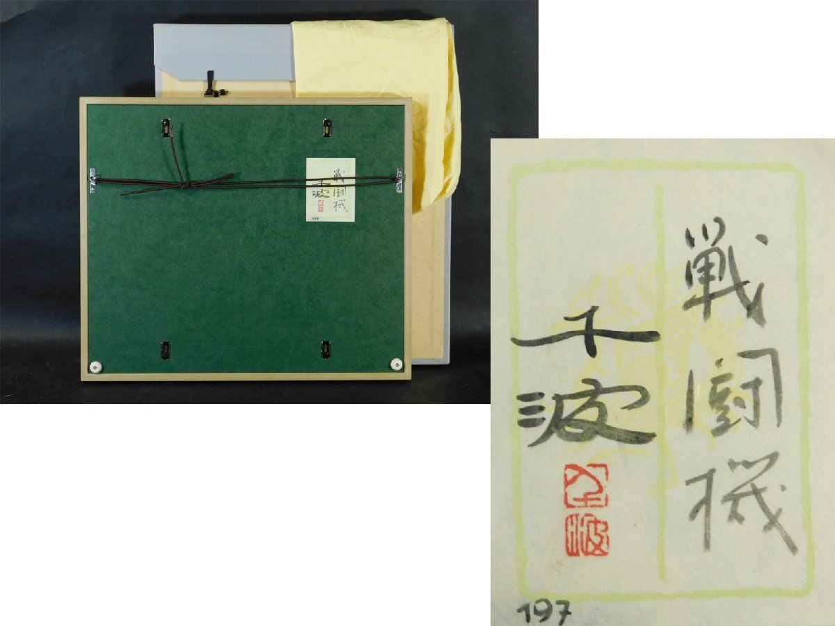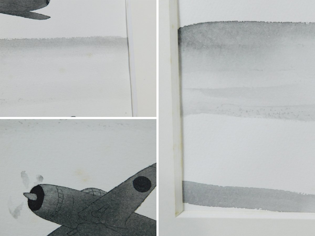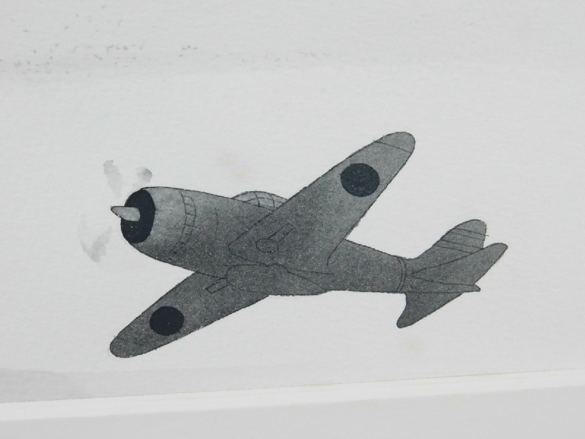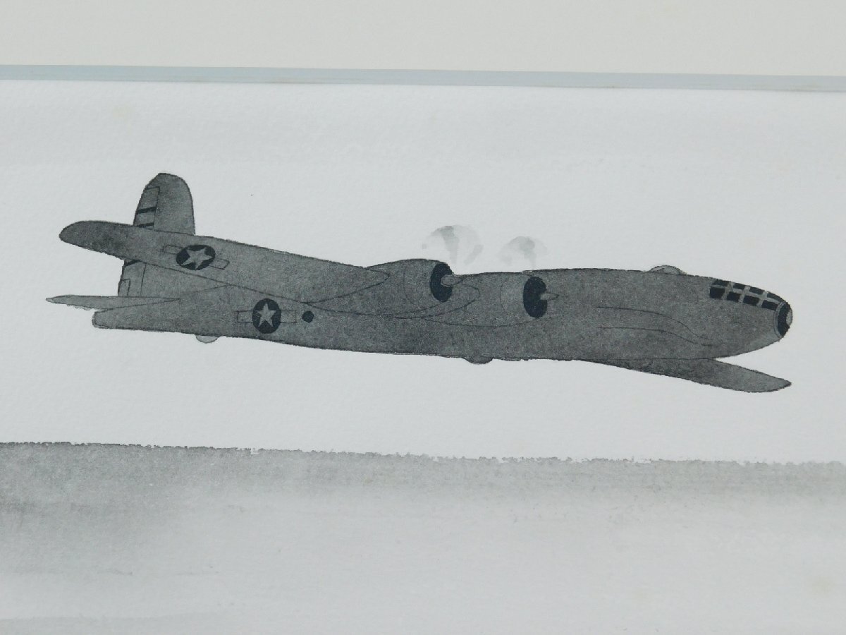 中島千波 戦闘機(零戦 B29)日本画 水墨画 挿絵 肉筆 額装 専用タトウ 共シール OK5081
