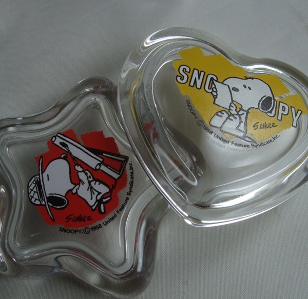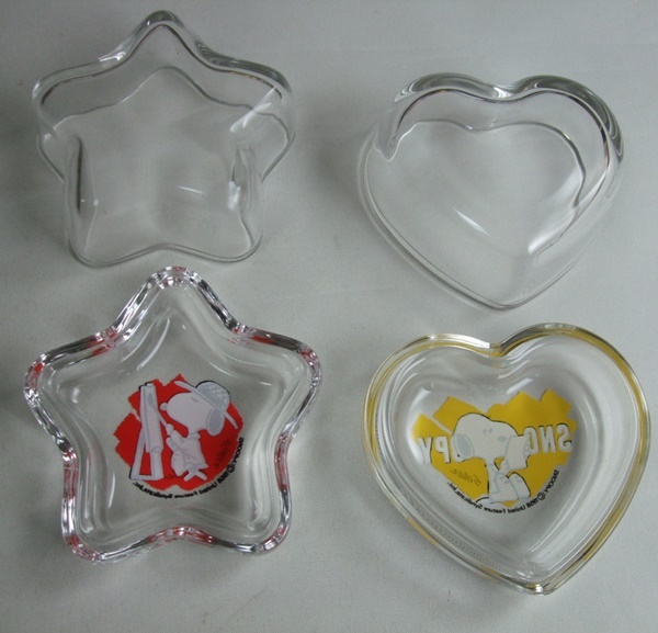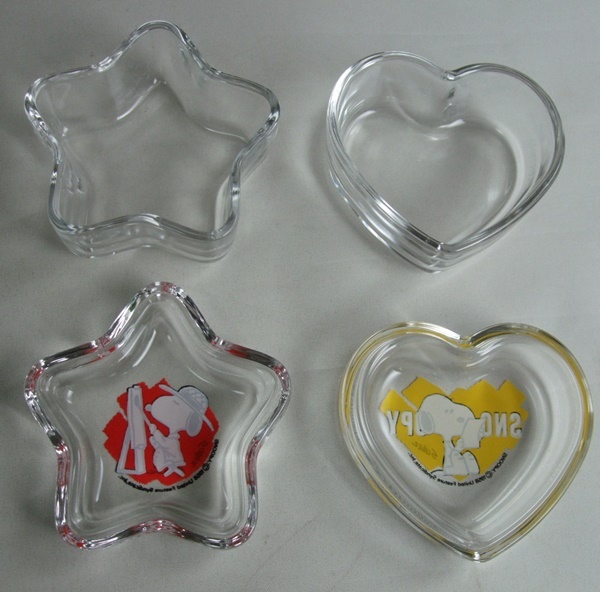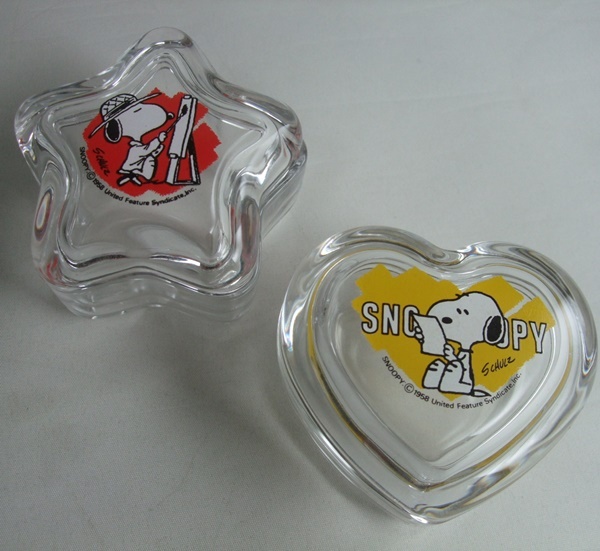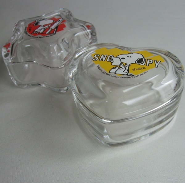 VINTAGE スヌーピー SNOOPY 佐々木硝子 ガラス製 ハート・星型 小物入れ 2個セット 中古品 ビンテージ 70s 80s 日本製 昭和レトロ