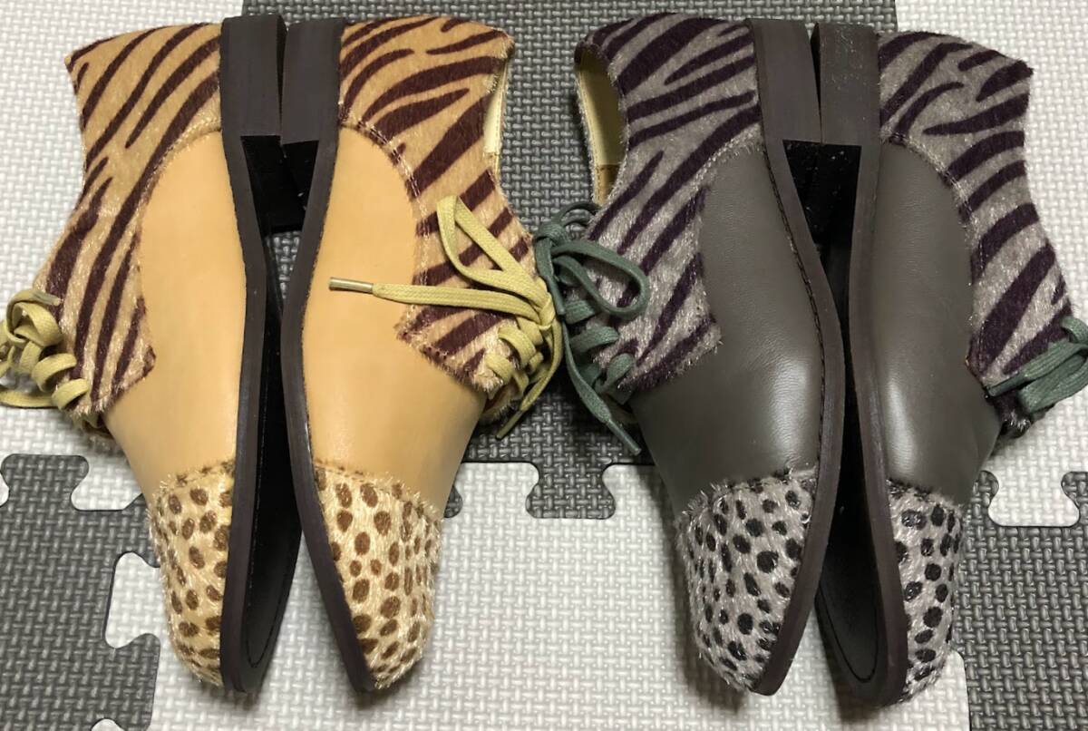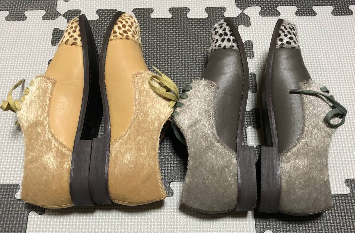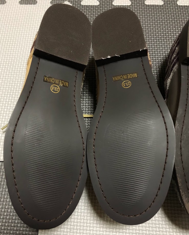 右の黒っぽい方はソール裏面の汚れなどある程度使用感があります。