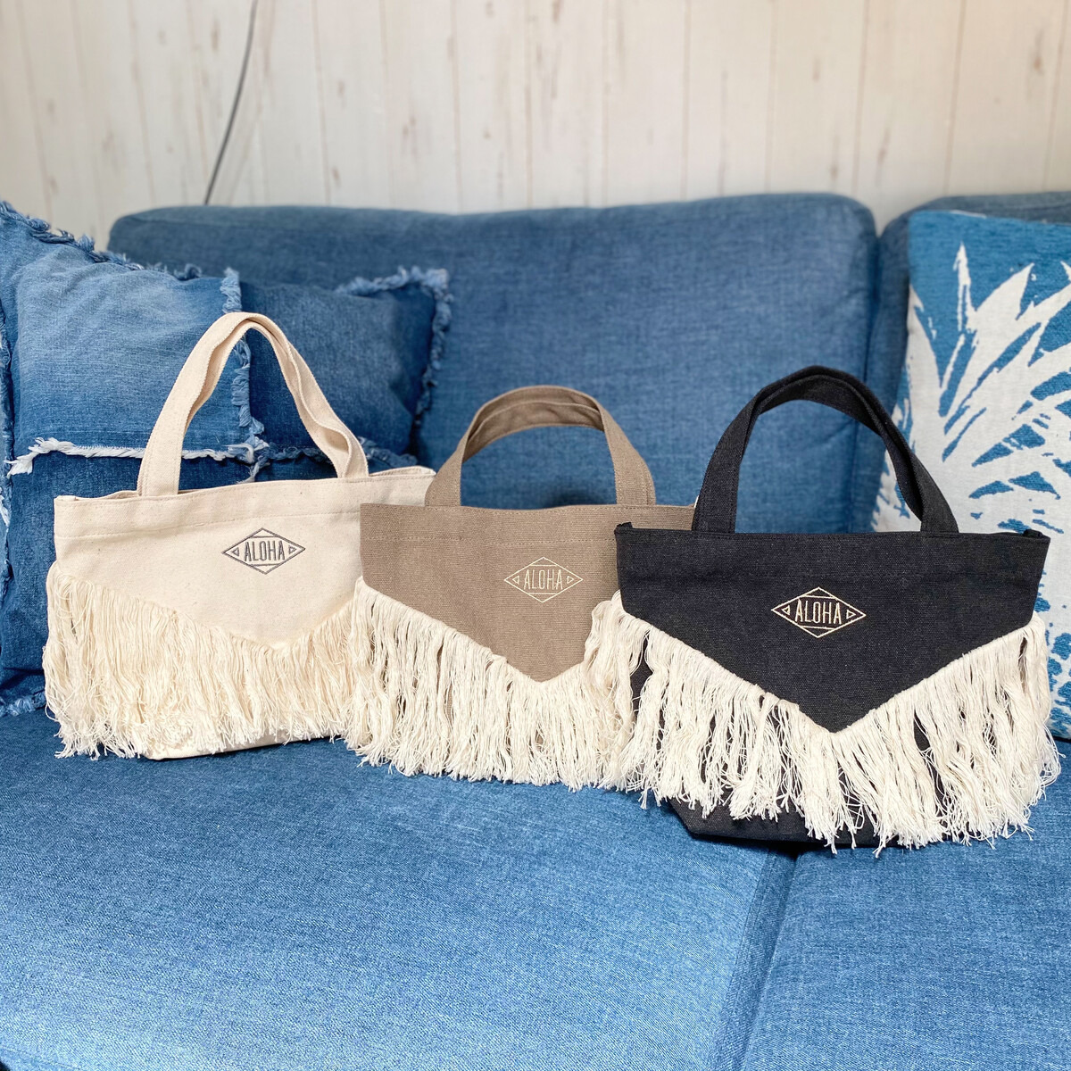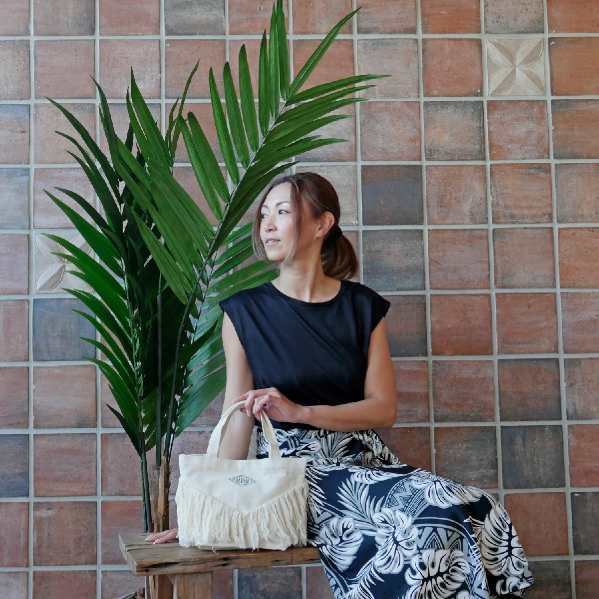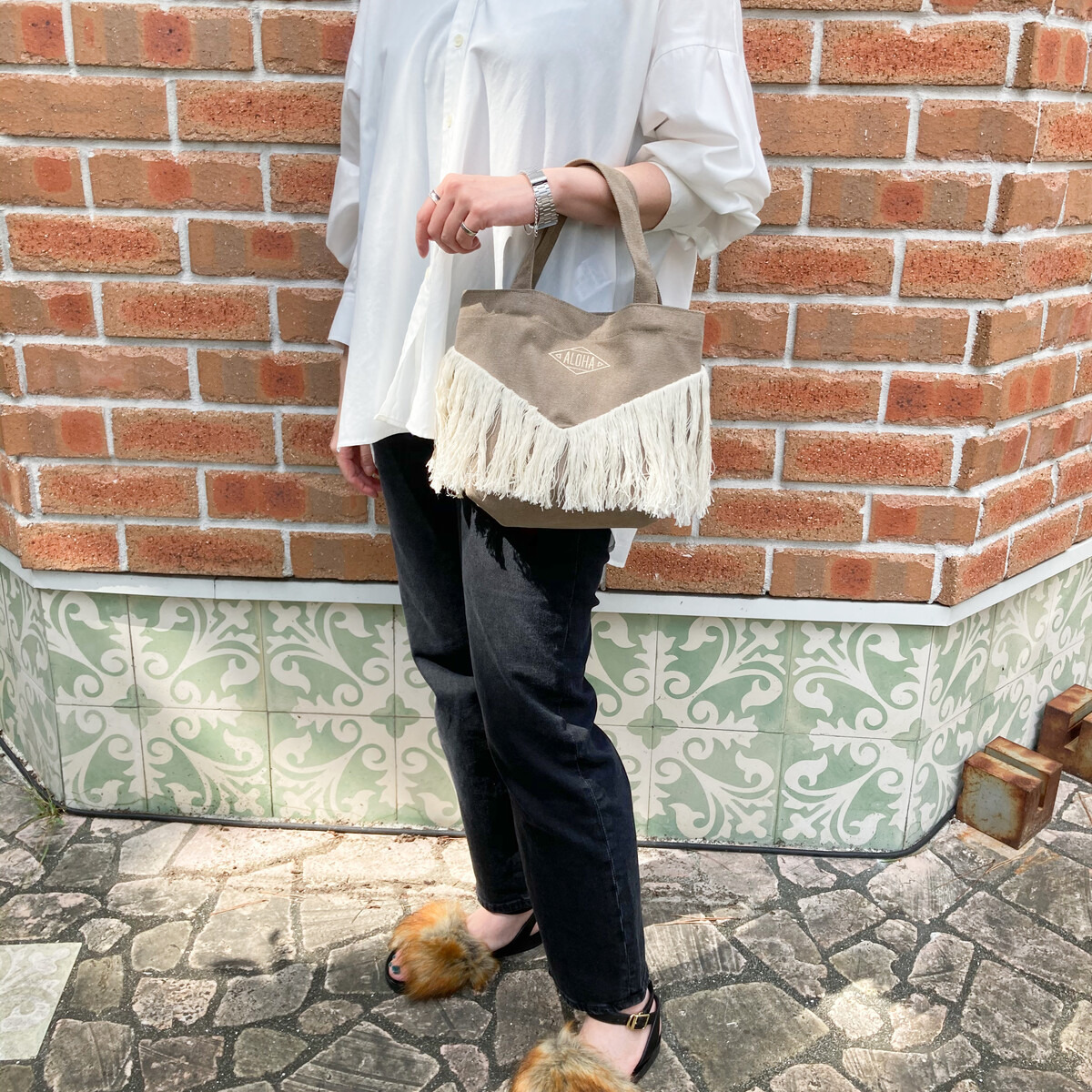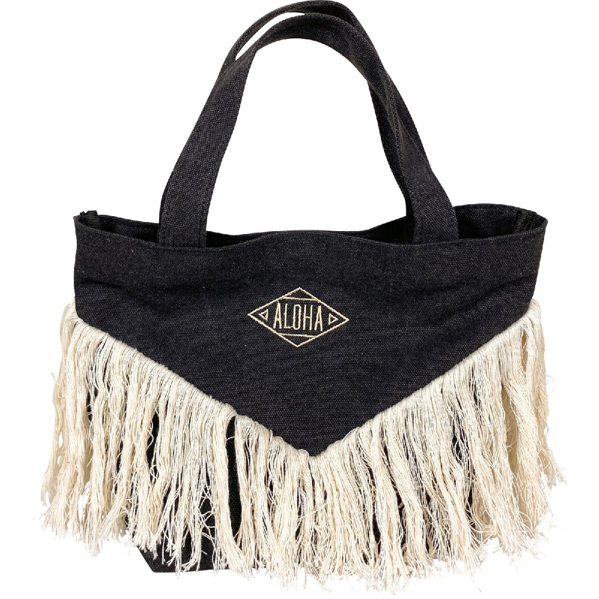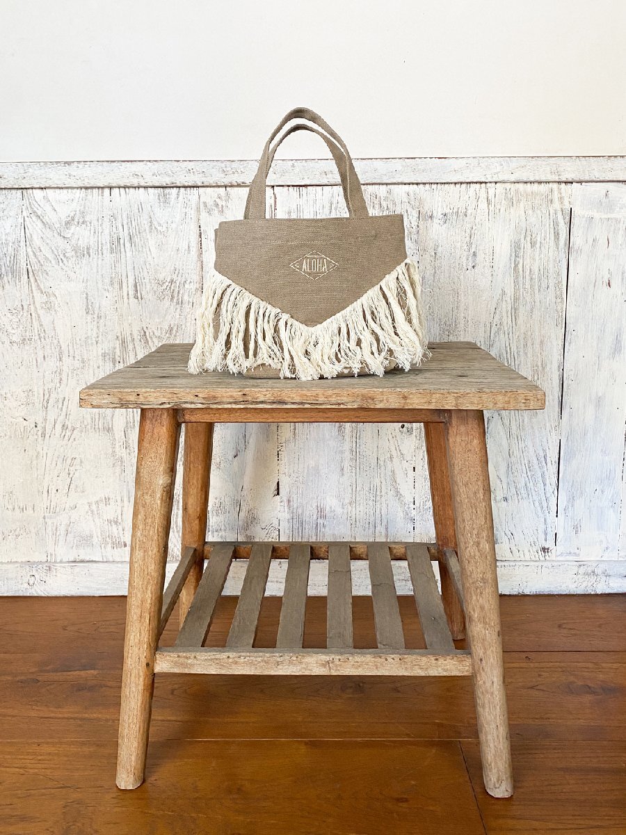 【長めのフリンジと刺繍がポイントのハワイアンミニトートバッグ】