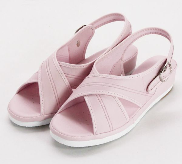 働く女性の定番、すっきりとしたクロスバンドデザインの仕事用サンダル。