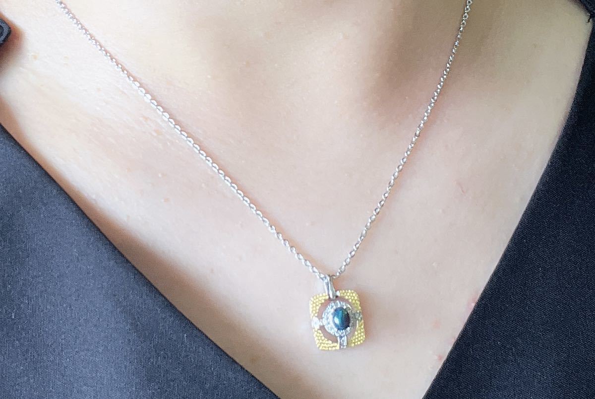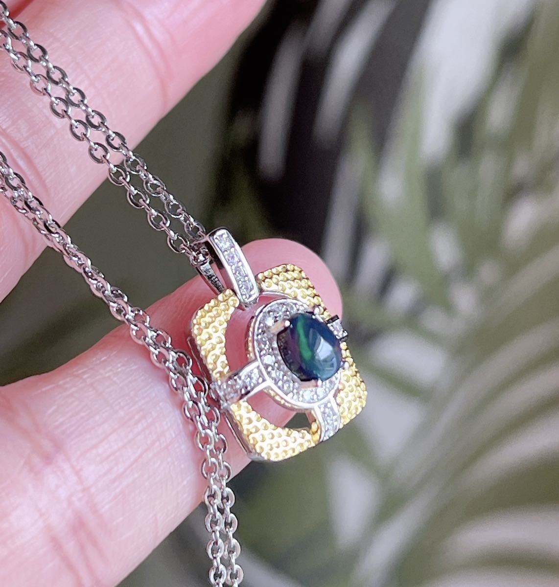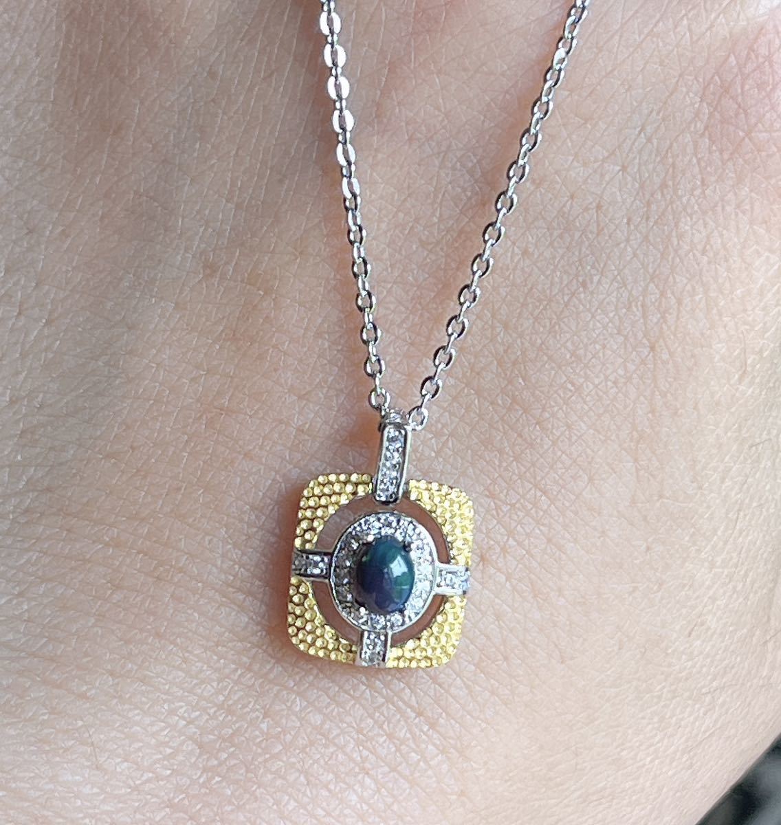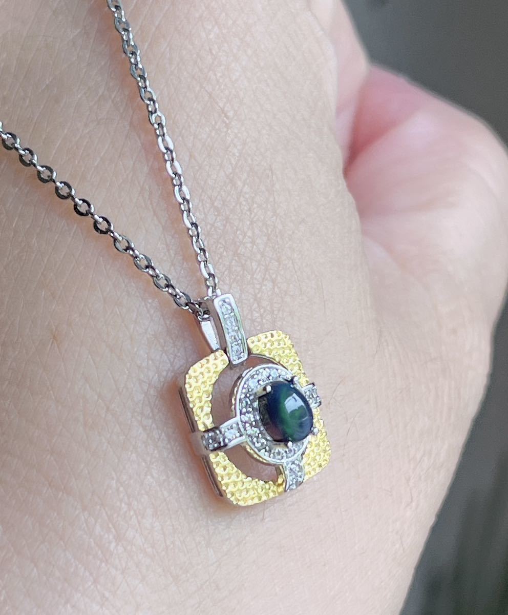 袋が付き、商品番号A2775;ブラックオパール周辺はジルコンです。