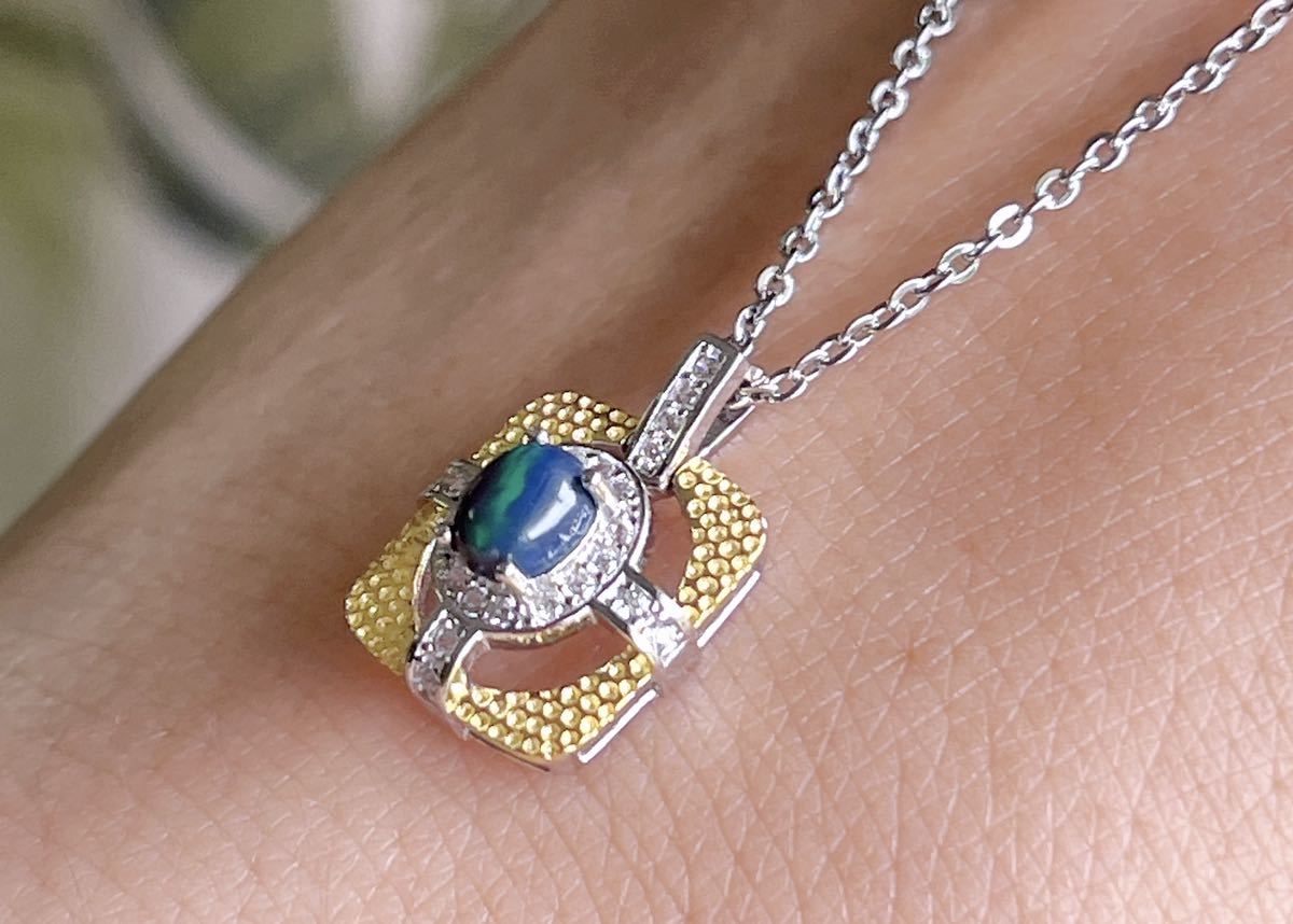 天然石 ブラックオパール ペンダントのサイズ約:11.5mm*12.2mm*厚さ7mm;