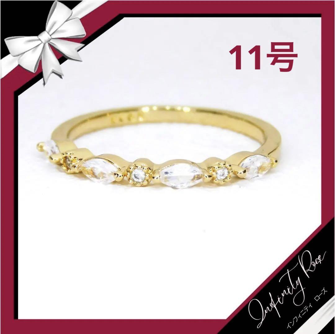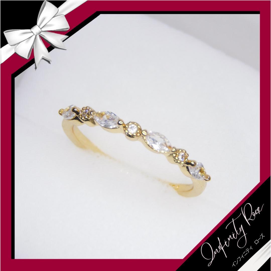 (R068G)11号 ゴールド重なり合う小粒エンゲージリング  高価爪留指輪