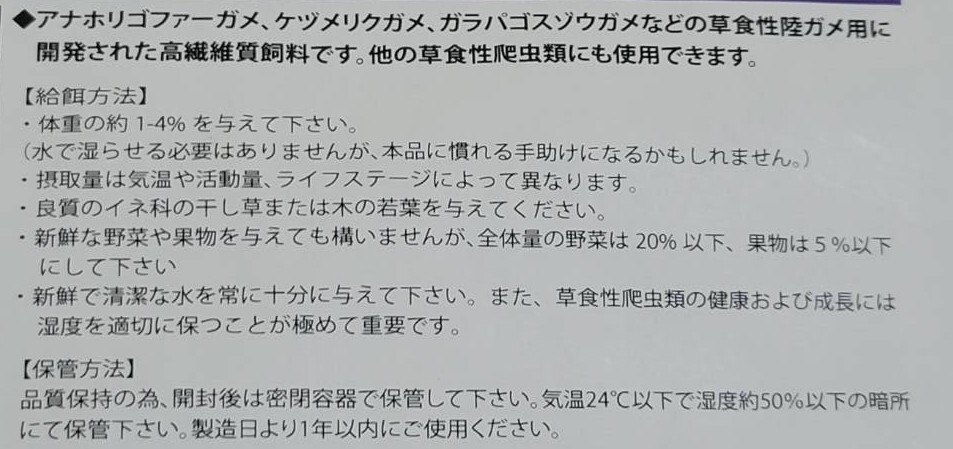 ・草食性リクガメ用に開発された高繊維質飼料です。