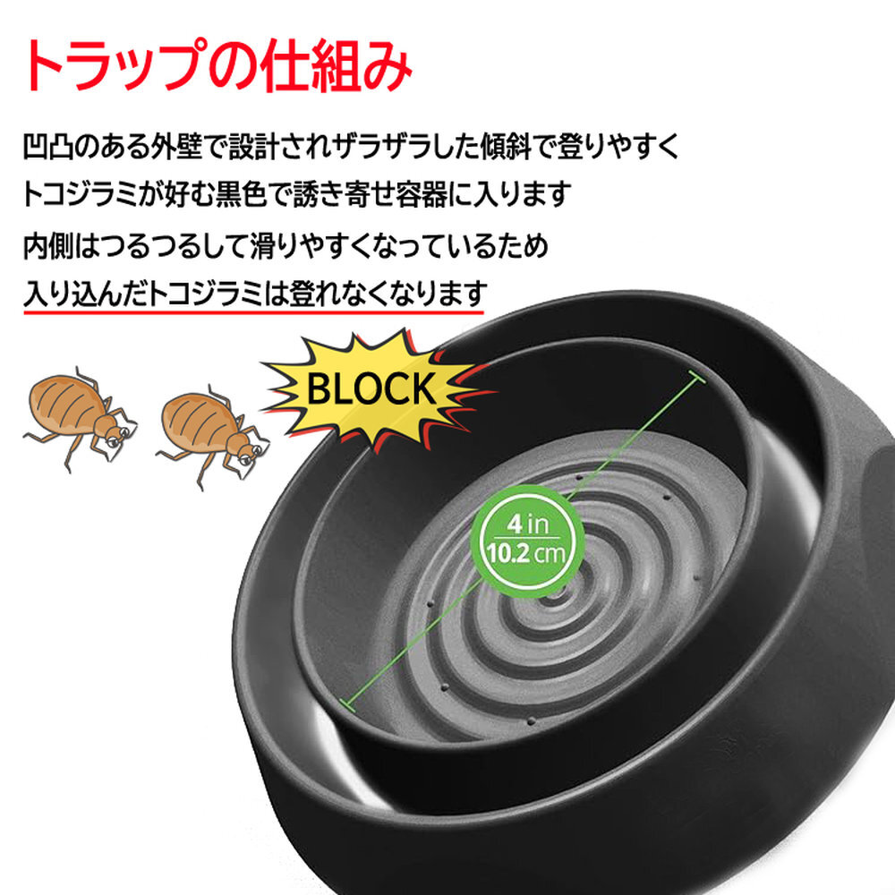 トコジラミ用トラップ 4個セット マット付き ベッドの脚に敷くだけ 誘引 浸入ブロック トコジラミ対策 黒色 つるつる素材 GWBBTP465S4