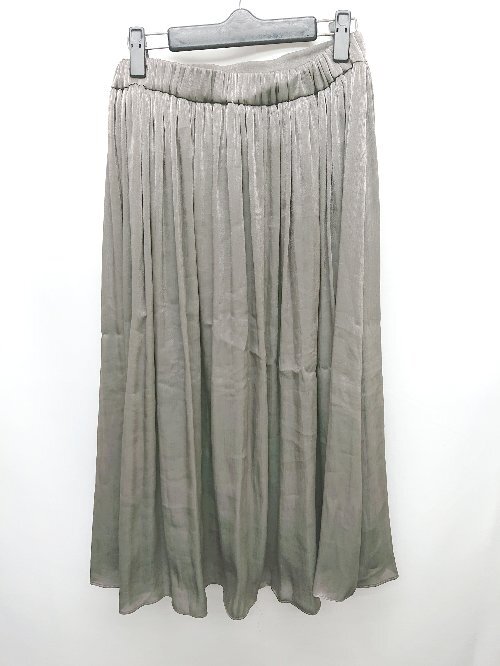 ◇ ROPE' ロペ ウエストゴム 裏地あり サテン調 膝下丈 ギャザー スカート サイズ36 チャコールグレー レディース P